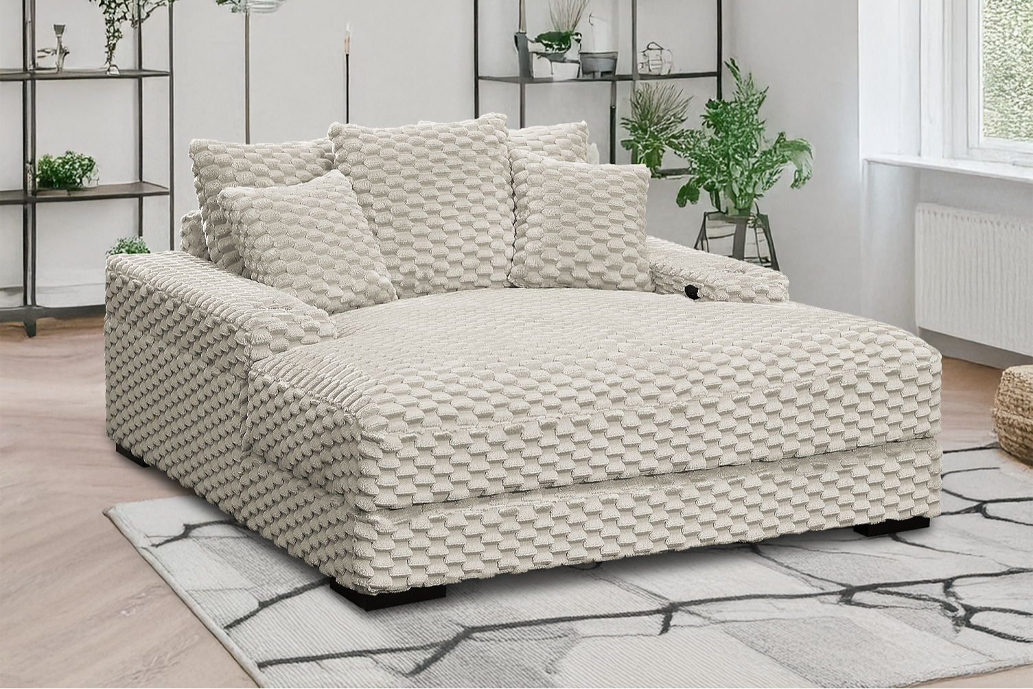 Elevate your lounging experience with this oversized textured chaise lounge, where bold design meets ultimate functionality. Wrapped in a rich 3D honeycomb fabric, this statement piece adds depth, texture, and modern flair to any living space.