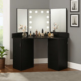 Stylish Black Corner Vanity Table with Tri-Fold Mirror