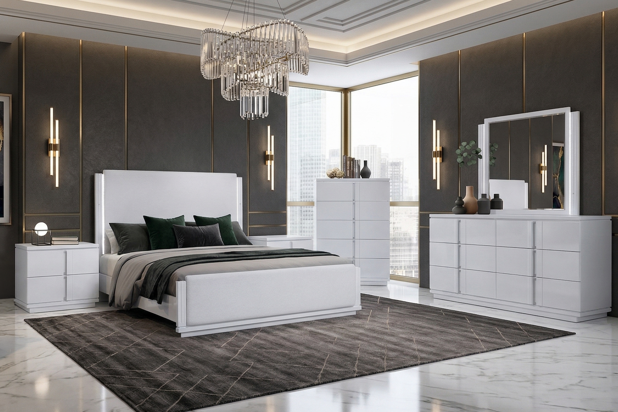 - Coordinates with modern and contemporary bedroom furniture