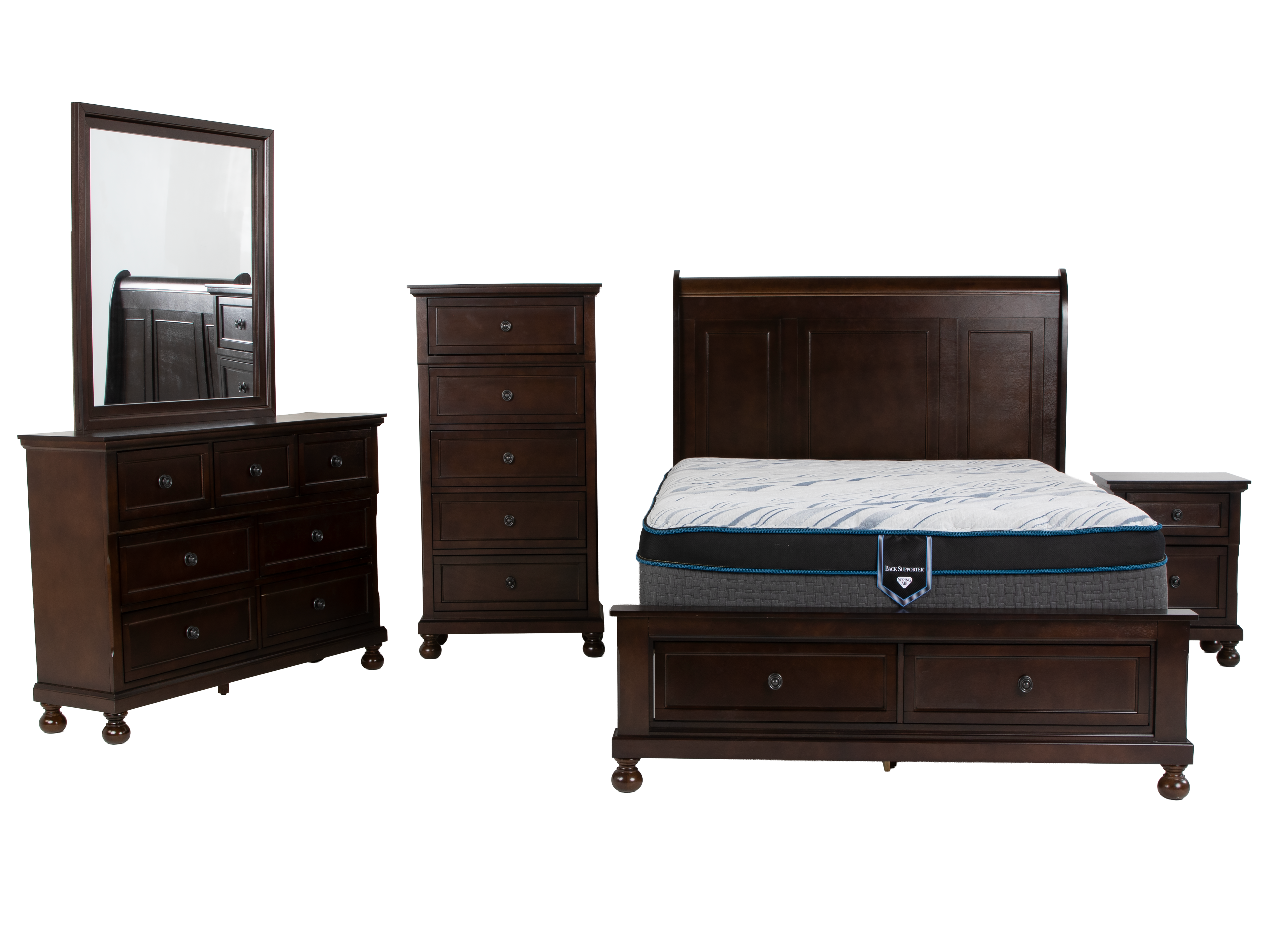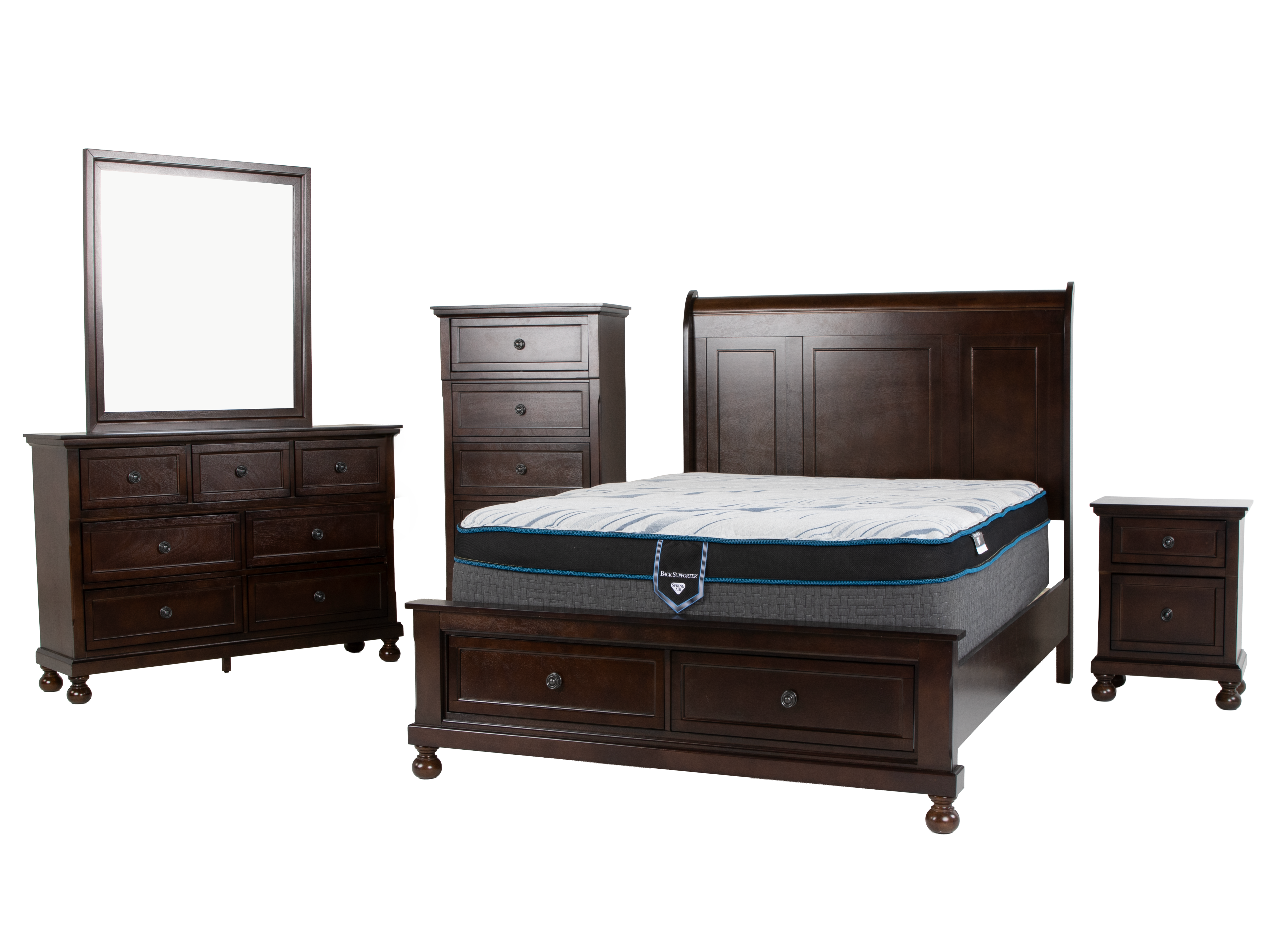 Bring timeless warmth and smart storage to your bedroom with this 6-piece queen storage bedroom set. Finished in a dark espresso, each piece features classic panel detailing, clean lines, and turned bun feet that blend beautifully with traditional, transitional, or modern décor.