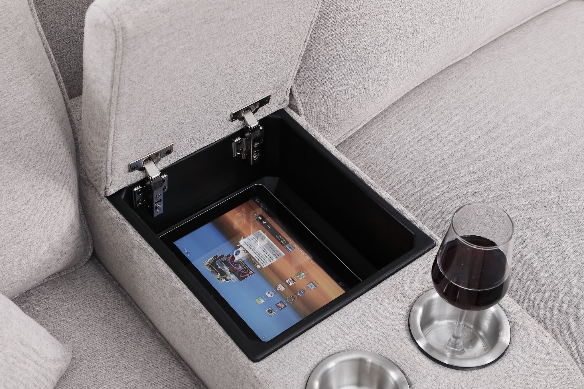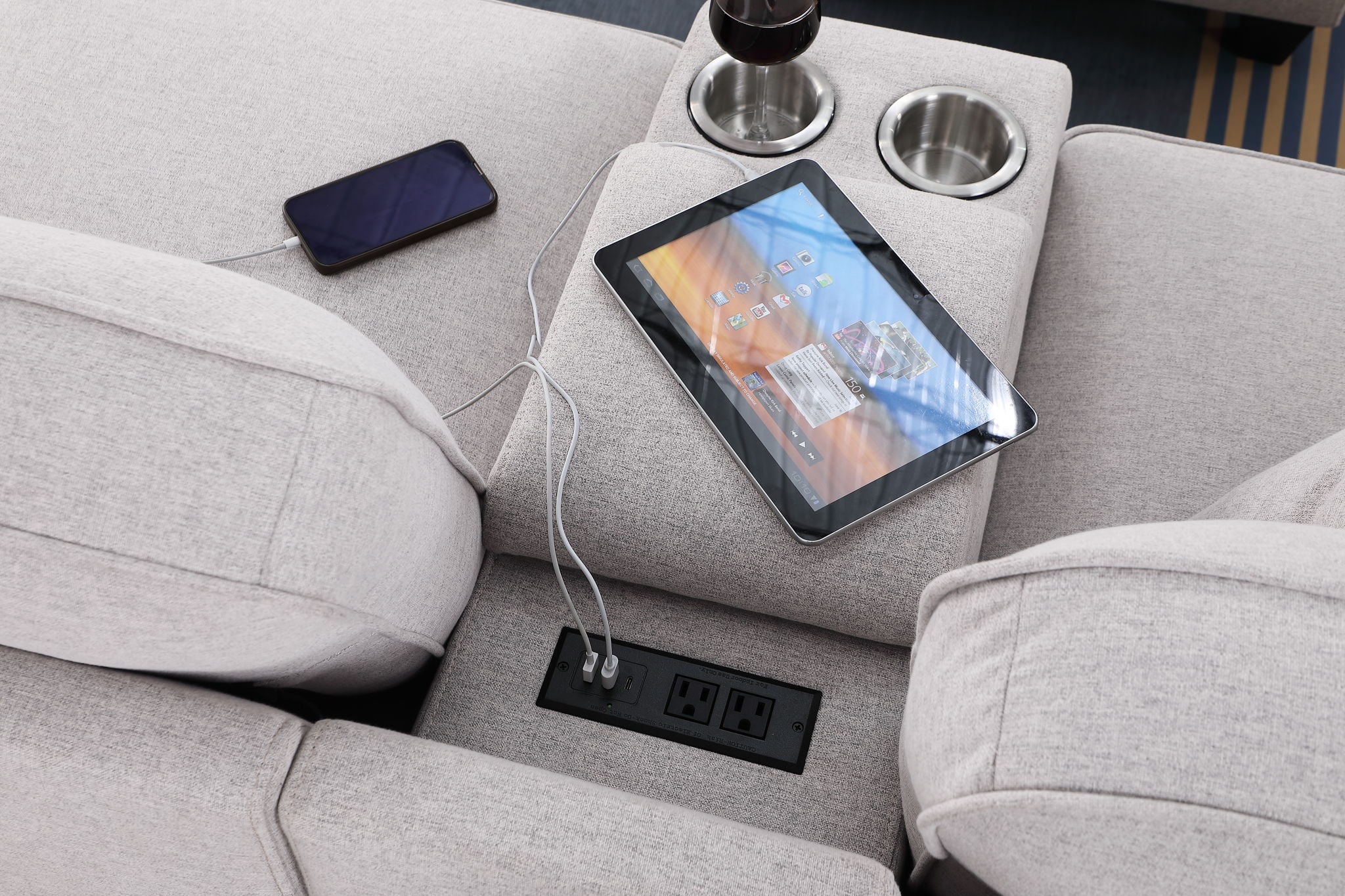 • Convenient Cupholder Console: Features a cupholder console with a USB port for easy electronic device charging.