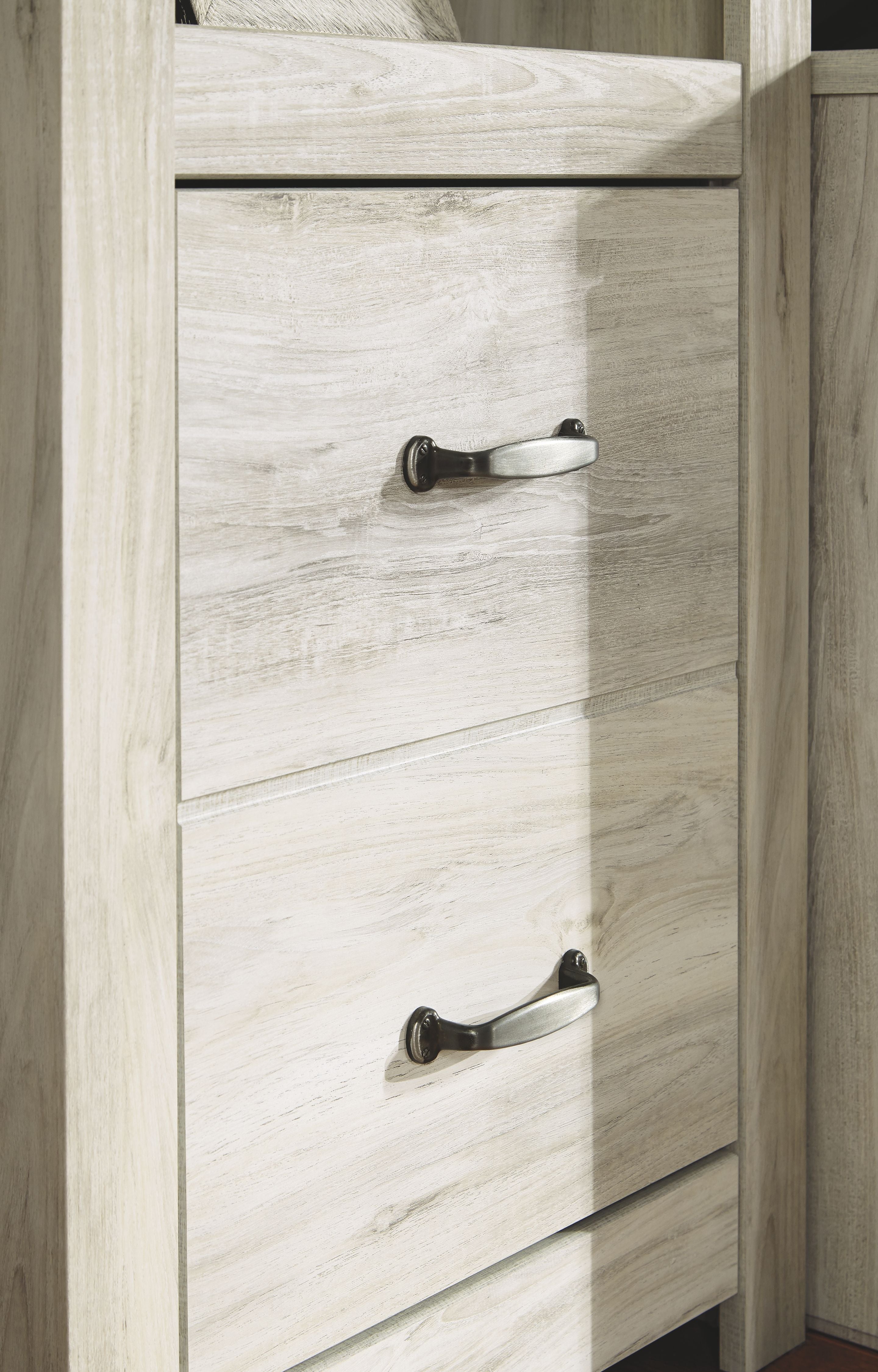 Express your farmhouse style with this TV pier. Its wispy white finish over replicated oak wood grain is a delightful change from the ordinary. Clean-lined styling gives the country chic aesthetic a fresh, contemporary appeal. The reversible door can open left or right with consumer assembly modification.