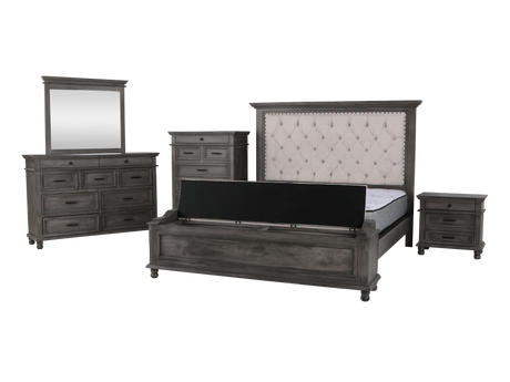 6-Piece Gray Upholstered Bedroom Set with Dresser, Mirror & Nightstand