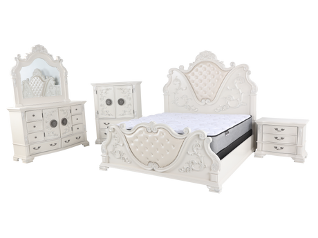 6 Piece Queen Bedroom Set with Mirrored Accents & Tufted Upholstery