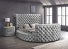 Grey Velvet Wingback Upholstered Bed with Crystal Tufting