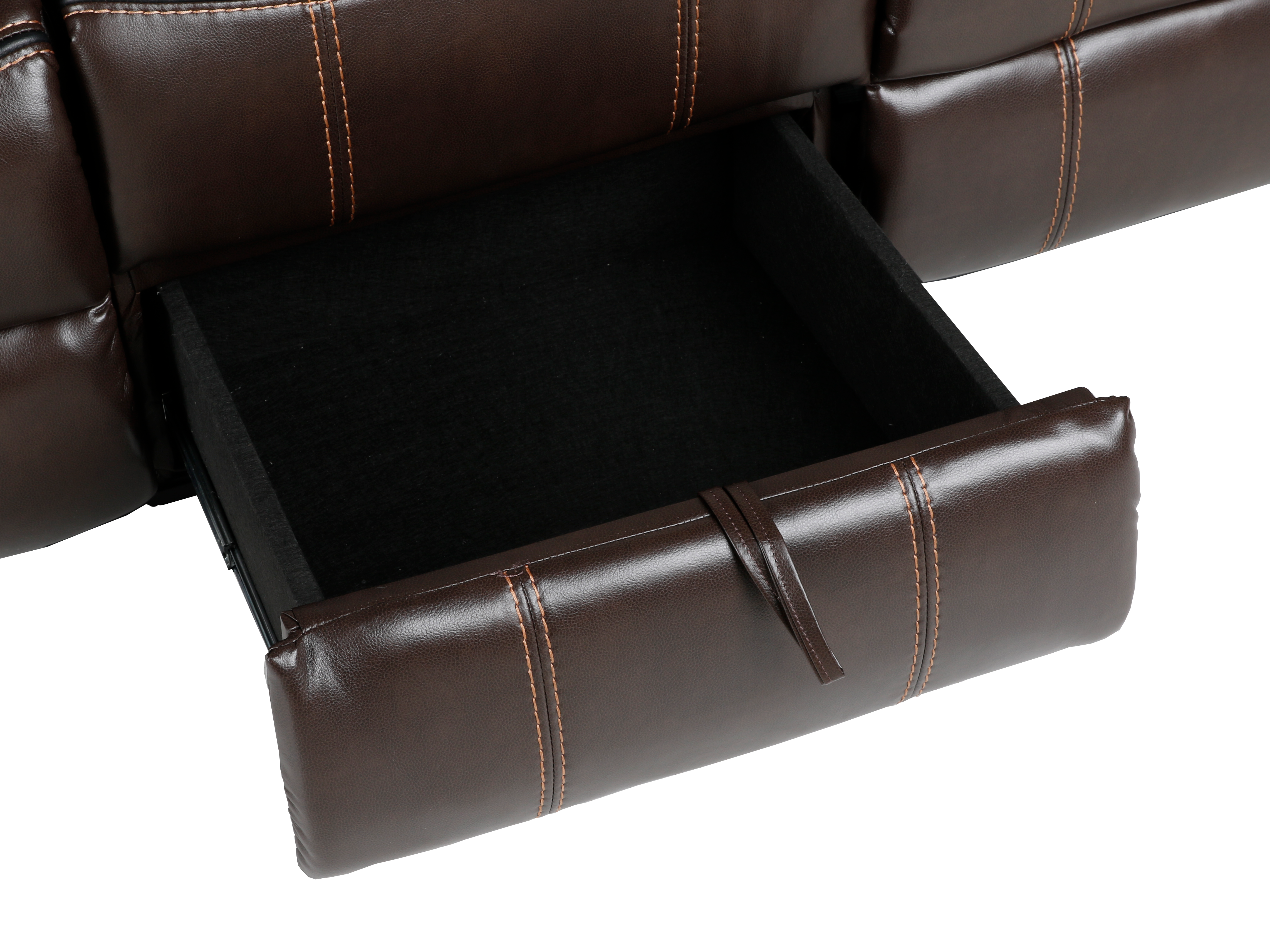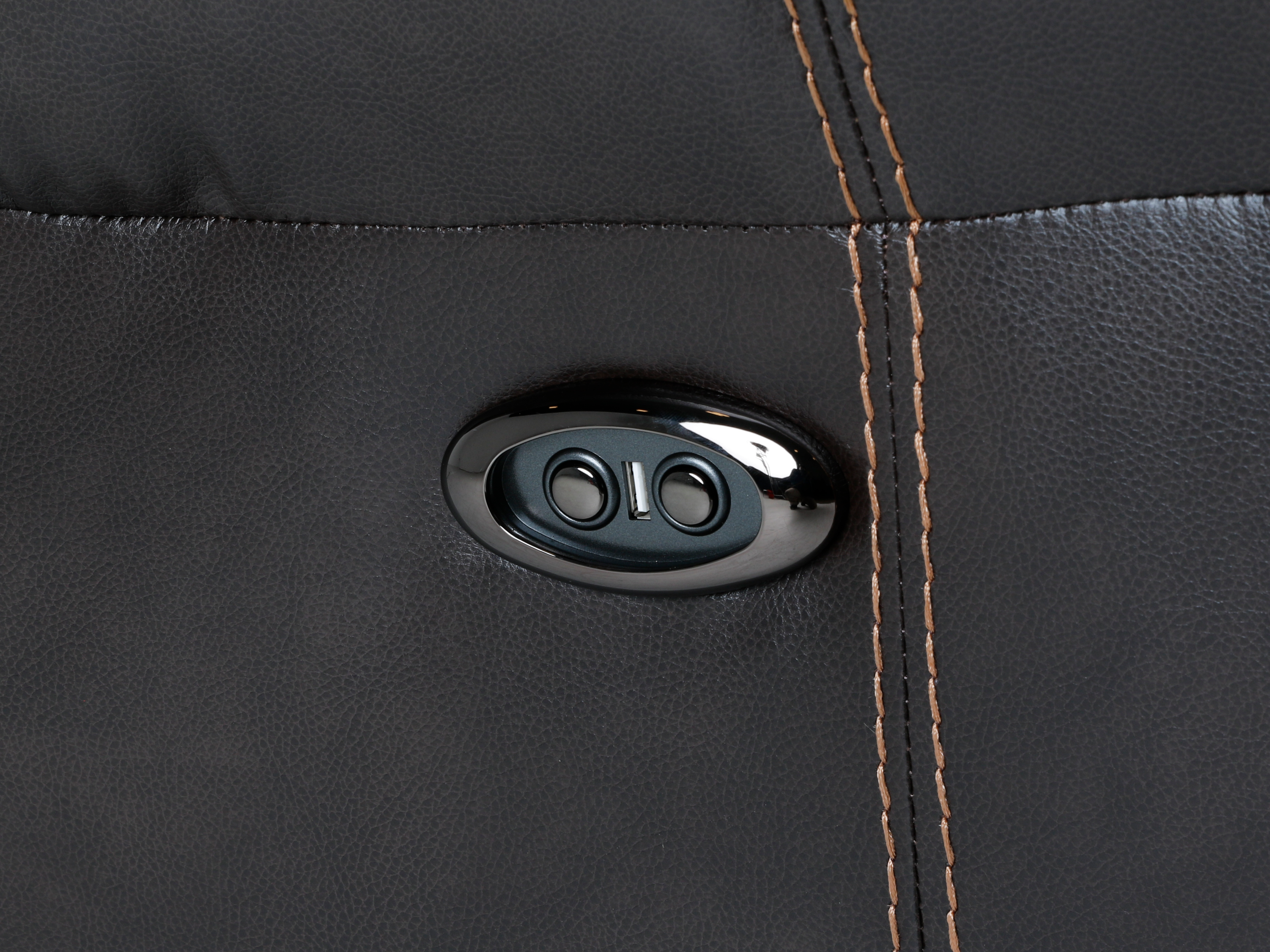 A dark-brown, leather-look performance upholstery designed for easy cleaning and daily use. Exact content may vary by production run.