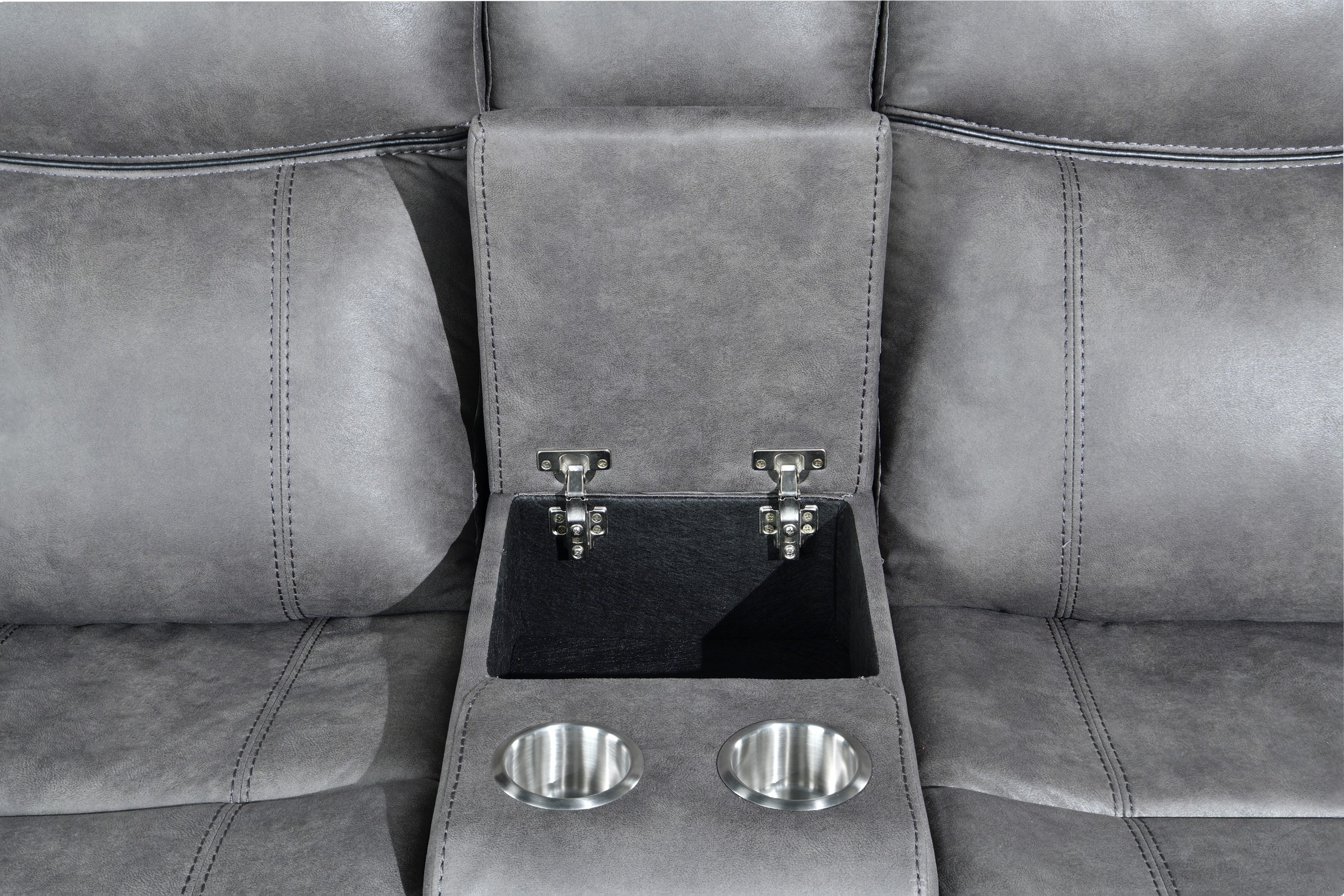 Gray 3-Piece Reclining Living Room Set – Sofa w/ Drop-Down Table, Console Loveseat & Recliner