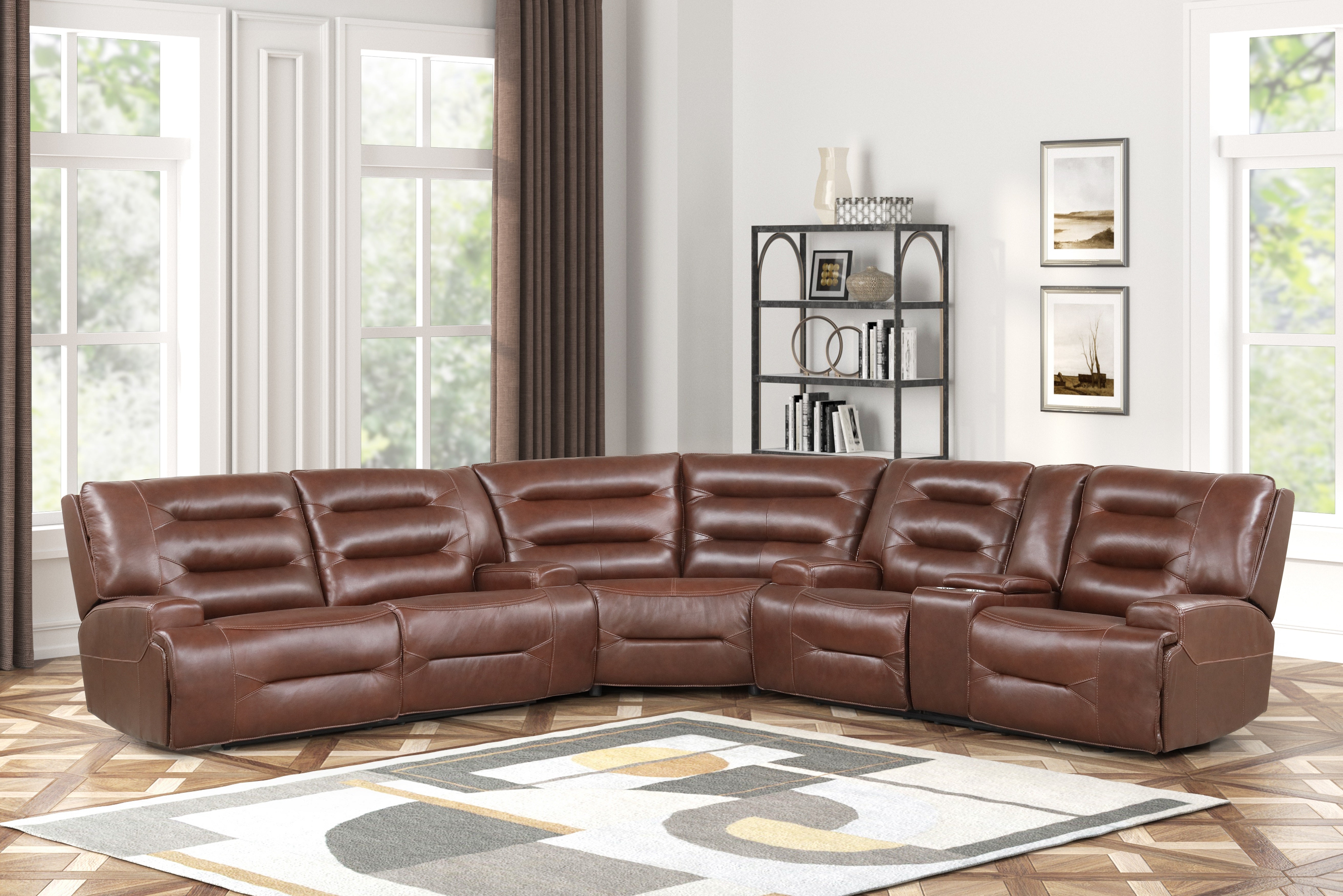 Brown Power Reclining Sectional with Power Headrests, Console & USB