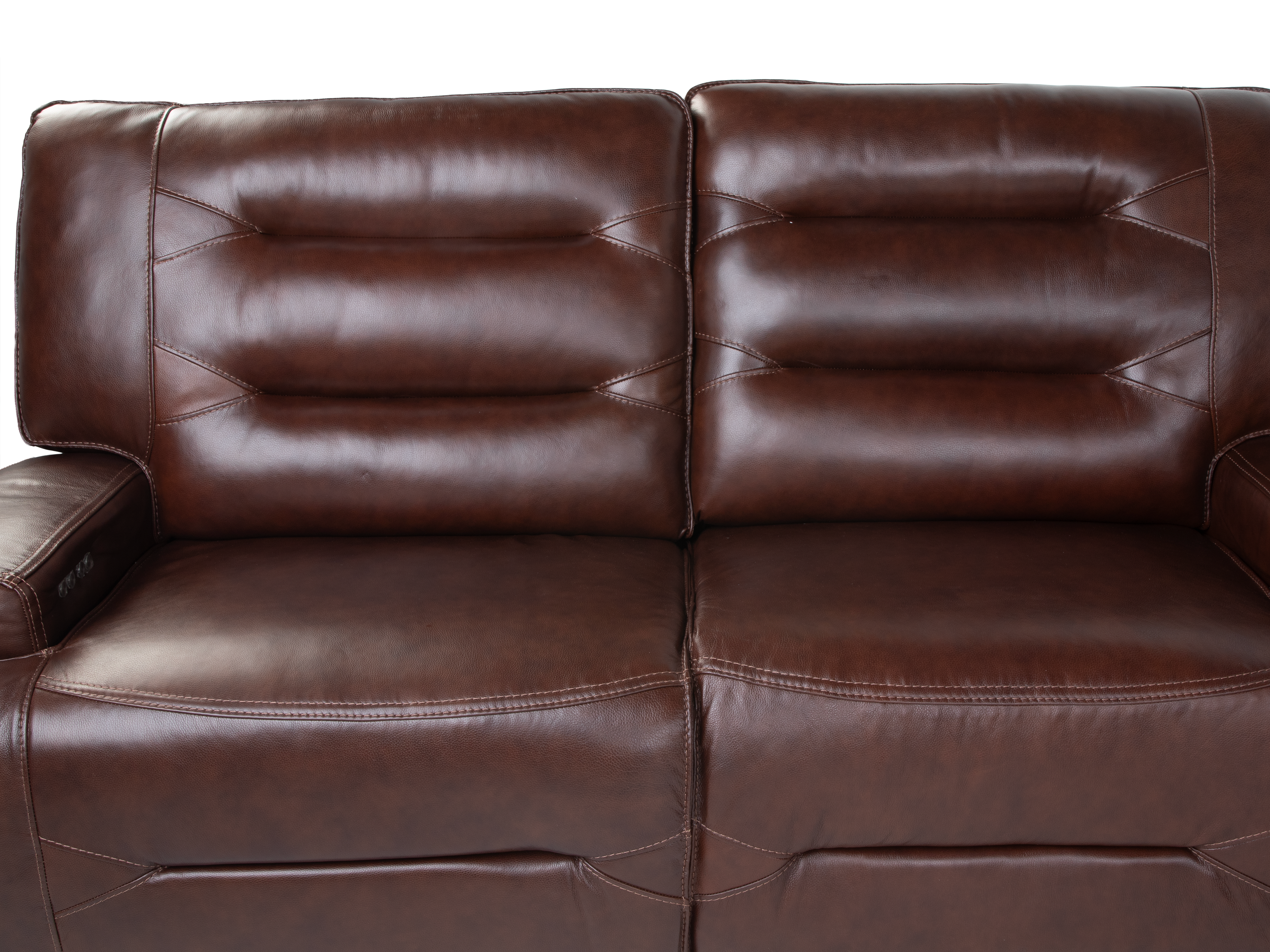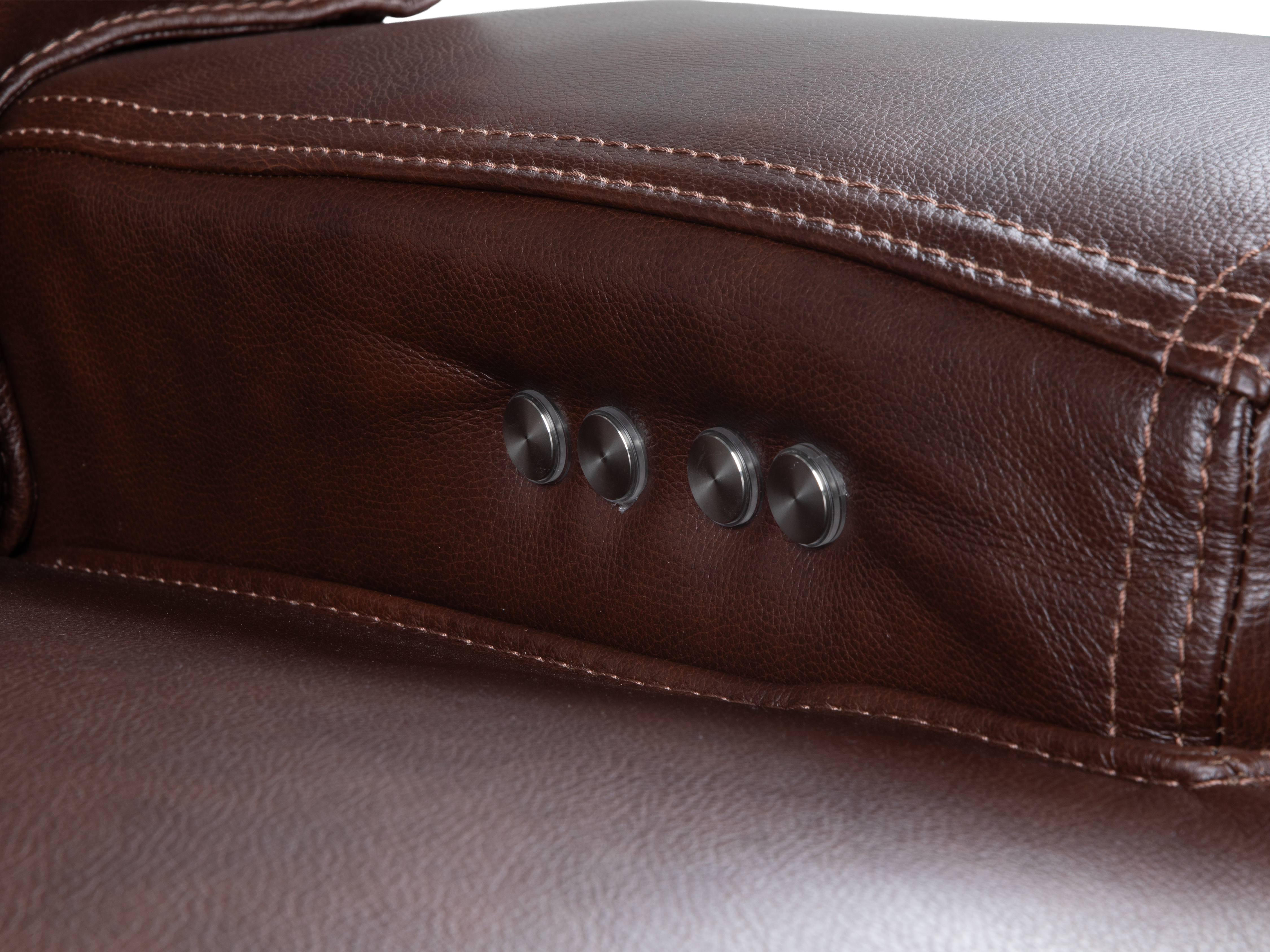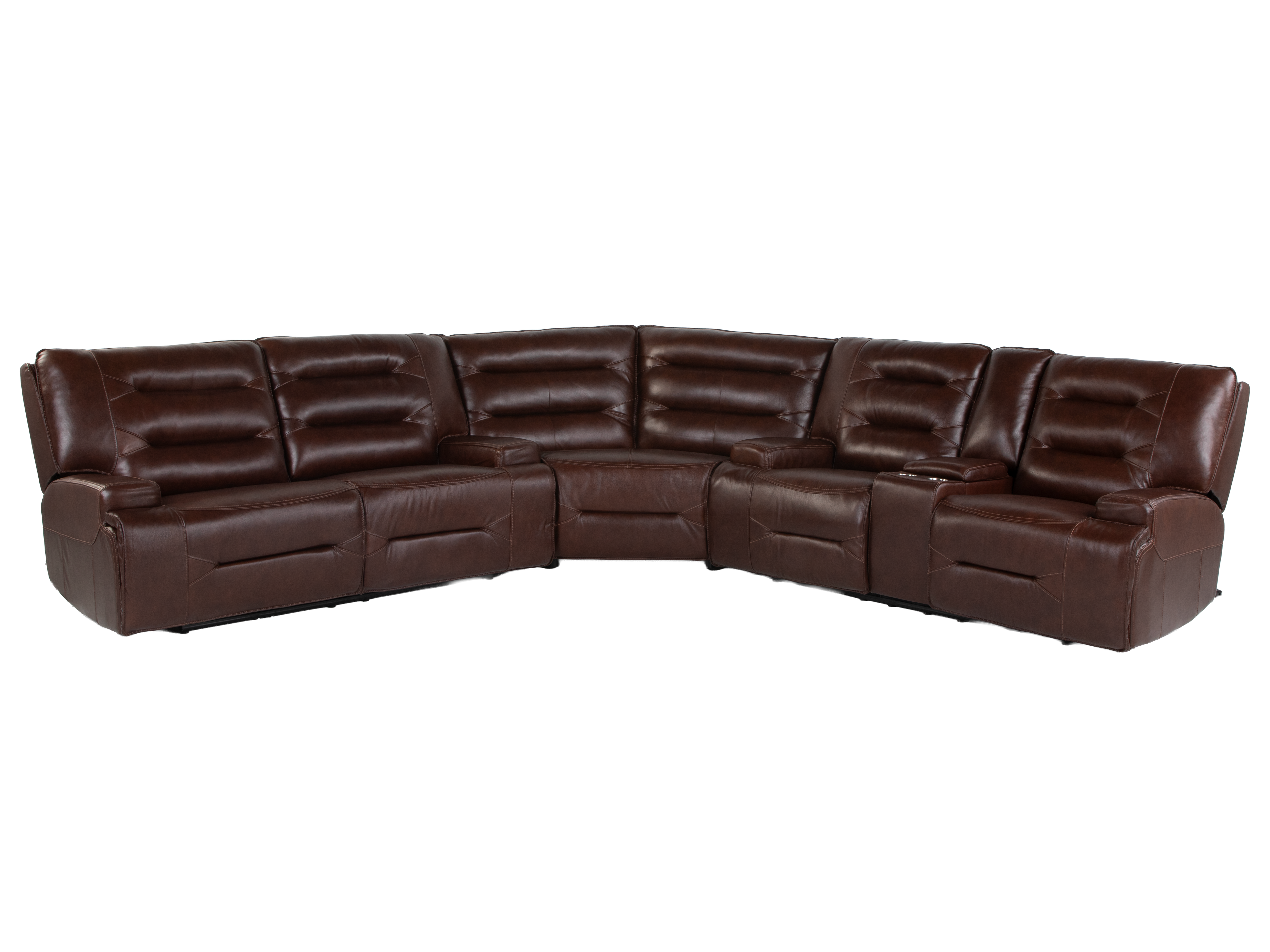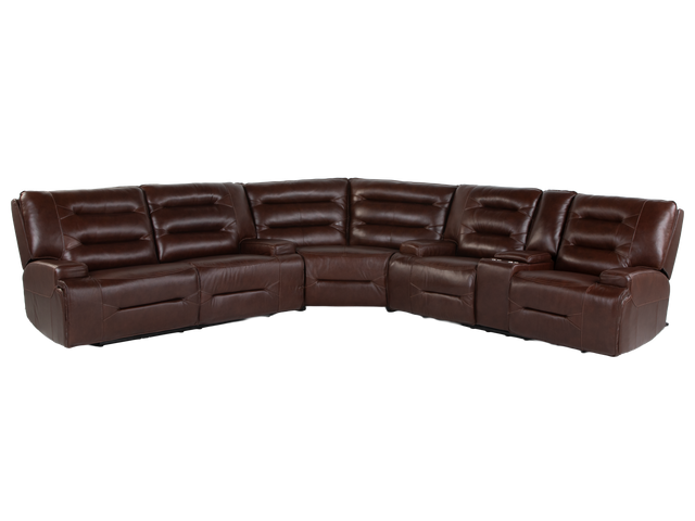 Upgrade your living space with the Power Reclining Sectional, combining rich style, comfort, and modern functionality. Upholstered in cow leather with PVC match, this spacious sectional features two power reclining loveseats with power headrests, a corner wedge, and a center console with USB and Type-C charging ports. The plush pocketed coil seats with D250 high-density foam deliver exceptional comfort, while the padded sides and back enhance its luxurious feel. Built with a durable plywood frame and spring base construction, this sectional is made to last. The console includes cup holders and a large storage compartment, making it perfect for movie nights or casual lounging.