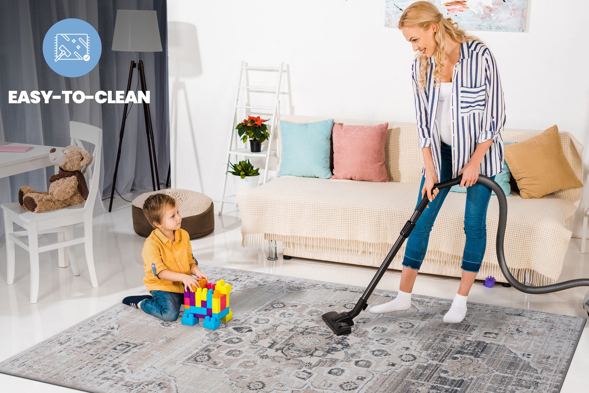 - Easy Maintenance & Durable: Stress-free cleaning includes regular vacuuming and gently blotting out minor stains with a mild detergent or carpet cleaner