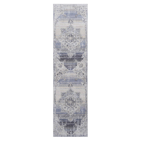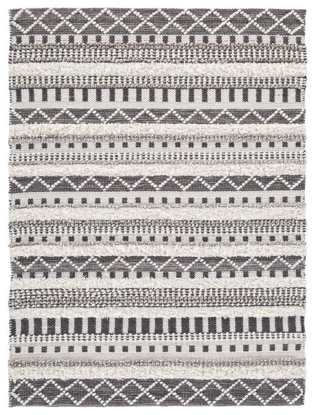 .Tyra Silver, Blue & Black Geometric Area Rug 6'6" x 9'