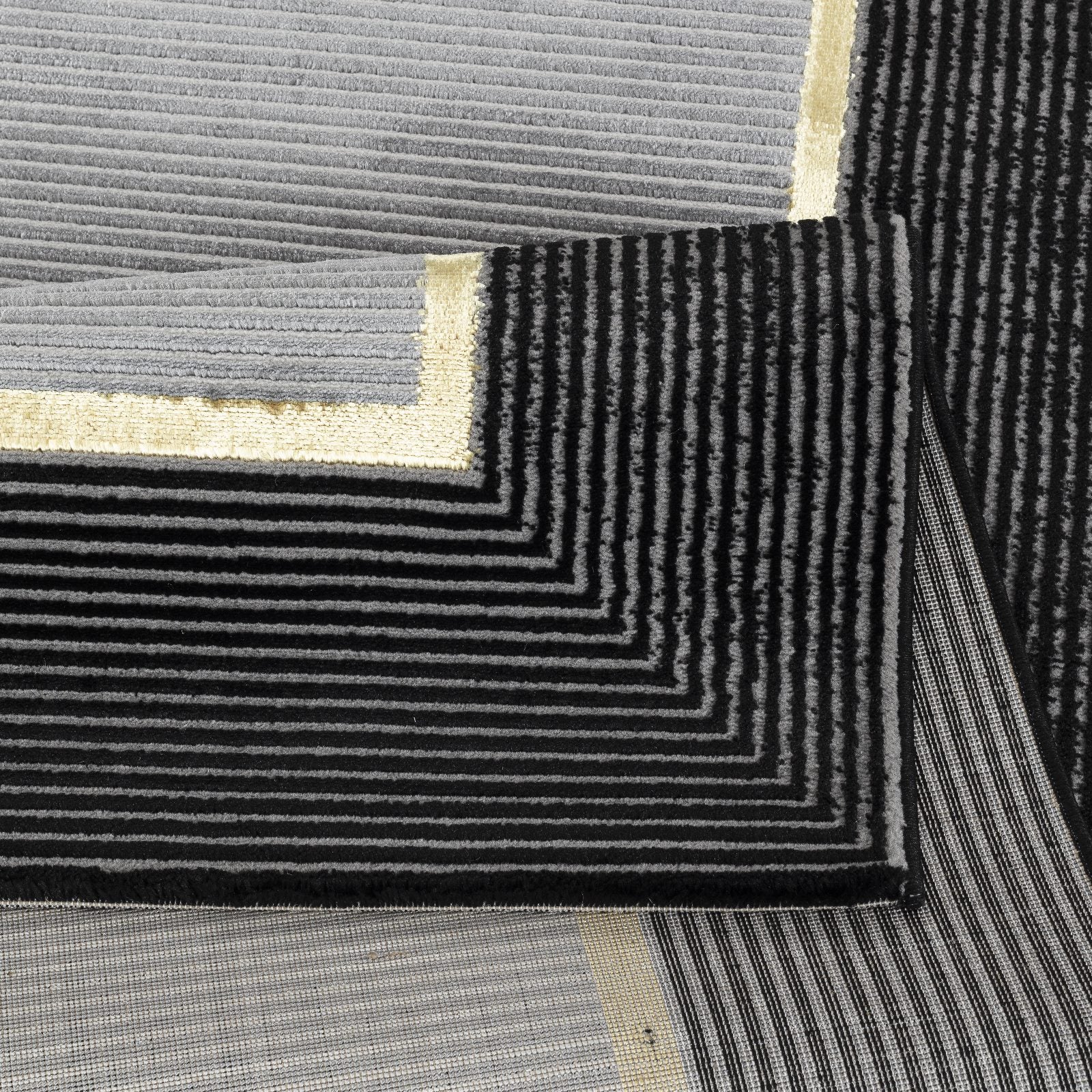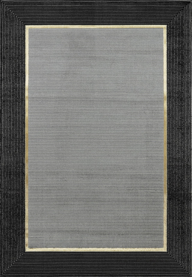 Bring contemporary elegance into your home with the Ashen Gray Rug. This 6' 6" x 9' 0" rug features a sophisticated gray center framed by a bold black border accented with a subtle gold trim, creating a striking yet versatile look. Power loomed in Turkey using a durable blend of 60% polypropylene and 40% polyester, it offers a soft feel underfoot, long-lasting performance, and easy low-maintenance care. Perfect for living rooms, dining spaces, or bedrooms, this rug combines modern style with everyday practicality.