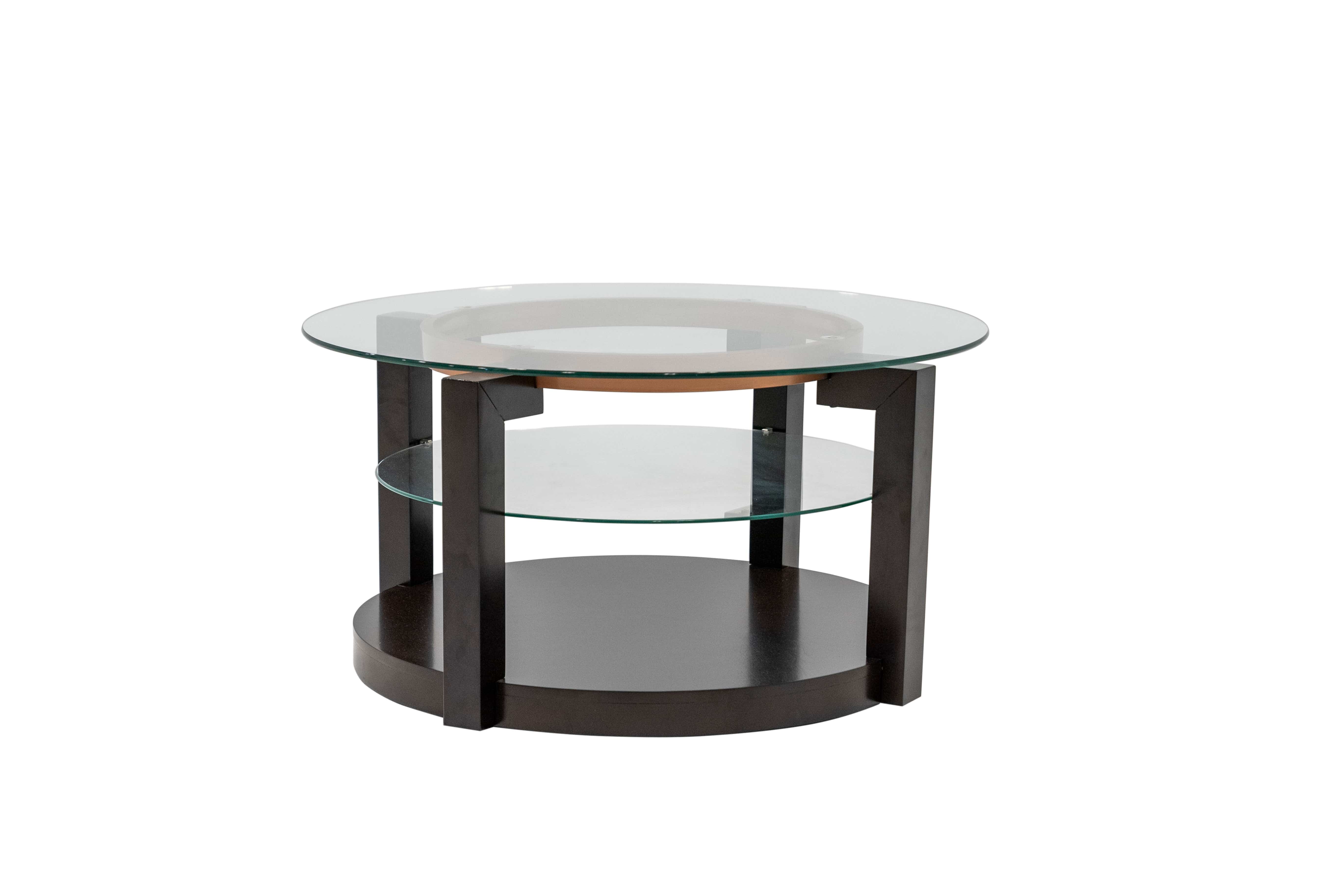 Avery 3-Piece Round Glass Coffee Table Set in Cherry Finish
