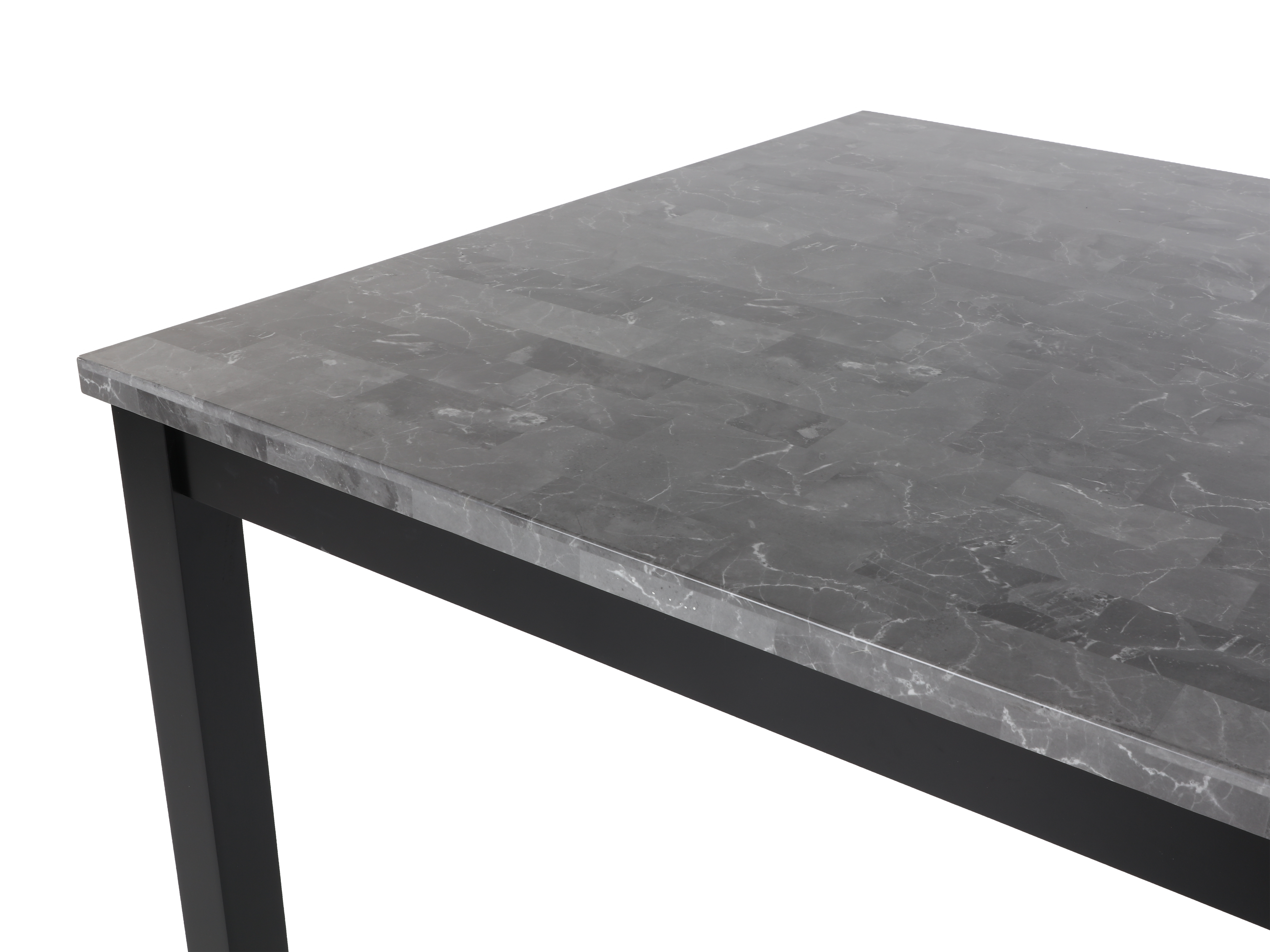 • Marble-look MDF top with a durable paper-marble finish; solid rubberwood legs for strength and stability