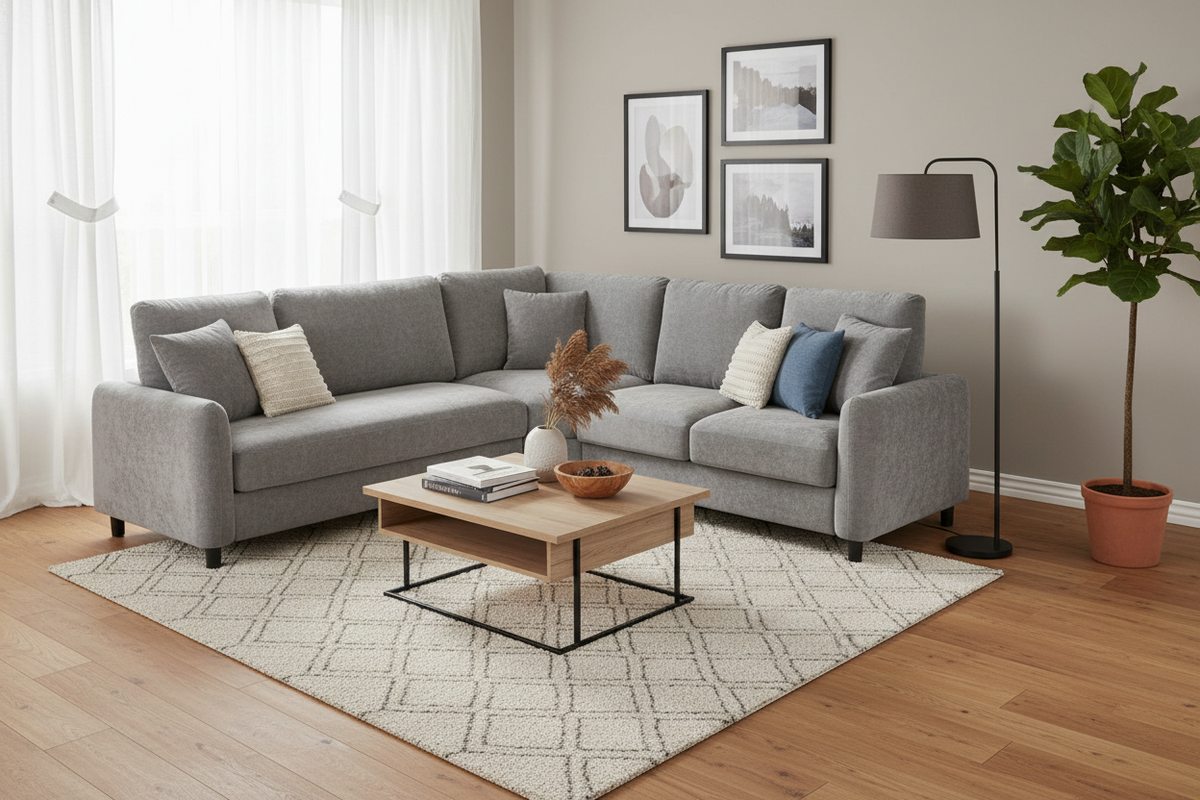Modern Grey Chenille 3-Piece Corner L-Shaped Sectional Sofa