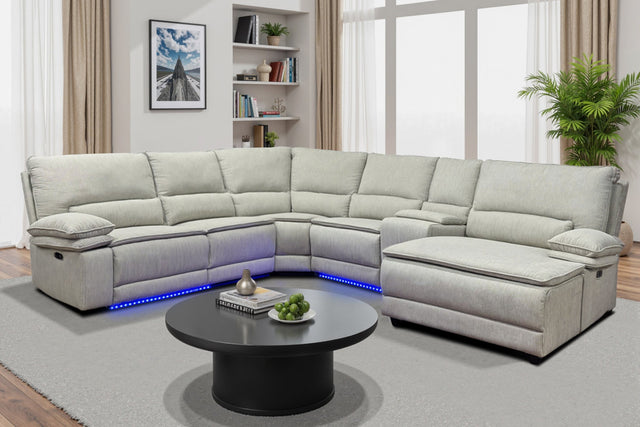 Elevate your living room with this 4 Piece Modern Power Reclining Sectional, blending contemporary comfort with cutting-edge features. This spacious sectional offers plush, soft-touch fabric upholstery and generously padded, supportive seating designed for premium relaxation. Enjoy the convenience of dual power recliners and an oversized chaise lounge, perfect for stretching out after a long day. Built-in USB and Type-C charging ports let you keep your devices powered up within arm’s reach, while the integrated storage console with stainless steel cup holders keeps remotes, drinks, and essentials organized. Vibrant blue LED lighting beneath the seats creates a modern, inviting atmosphere that’s perfect for movie nights and entertaining. With its versatile configuration, clean lines, and neutral color palette, this sectional fits beautifully in any open-concept space or modern living room, delivering the perfect combination of functionality, style, and luxury.