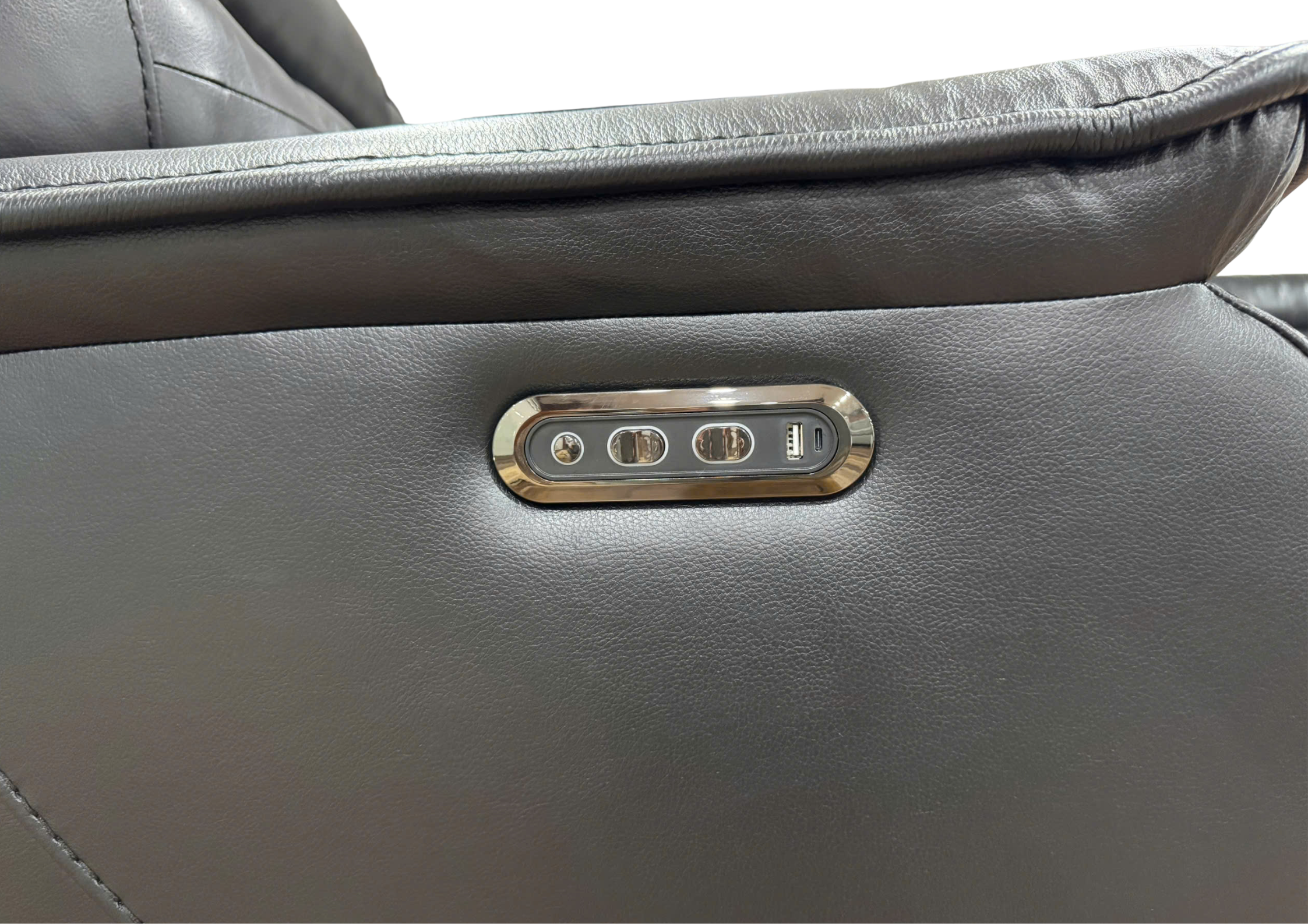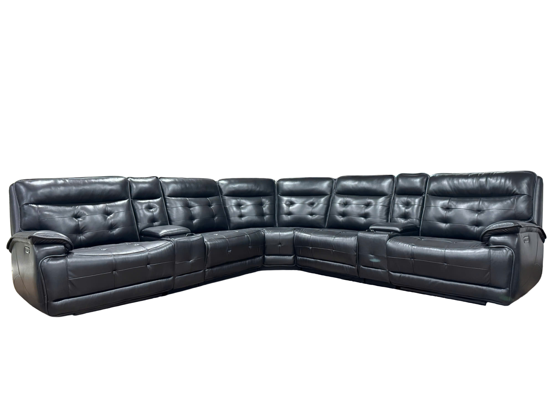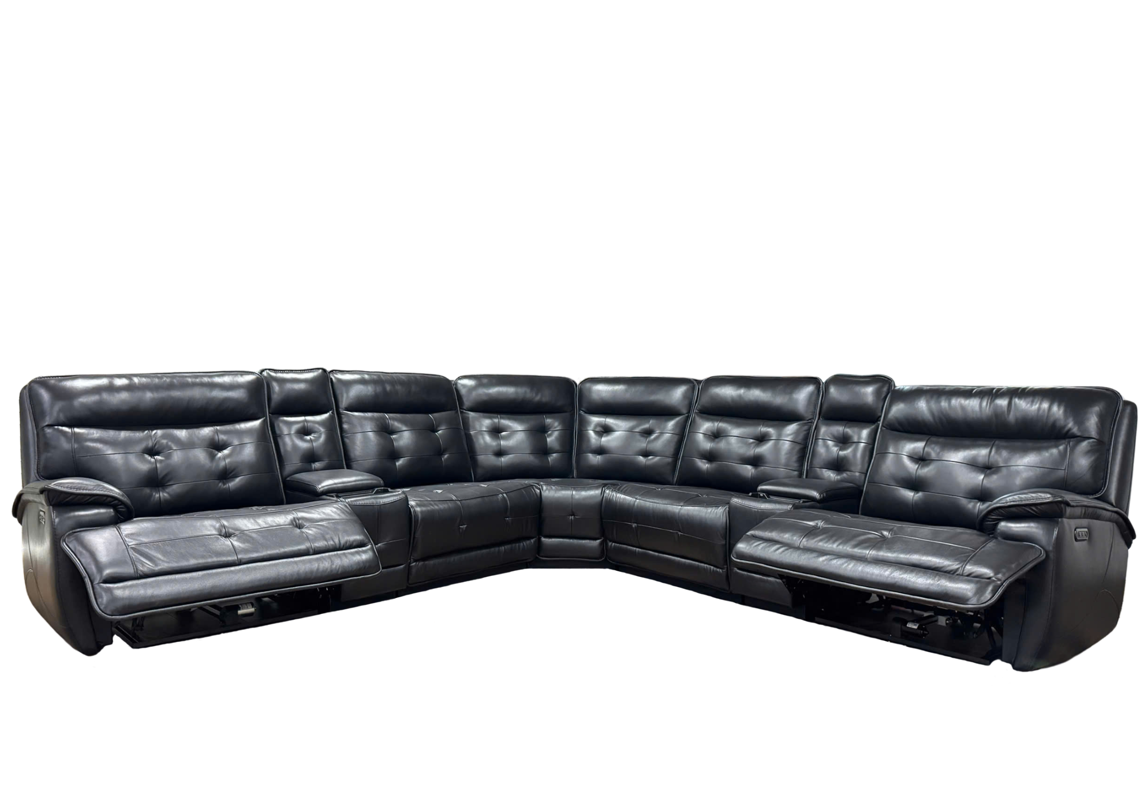 Black Leather Power Reclining Sectional Sofa with Console, USB & Wireless Charger