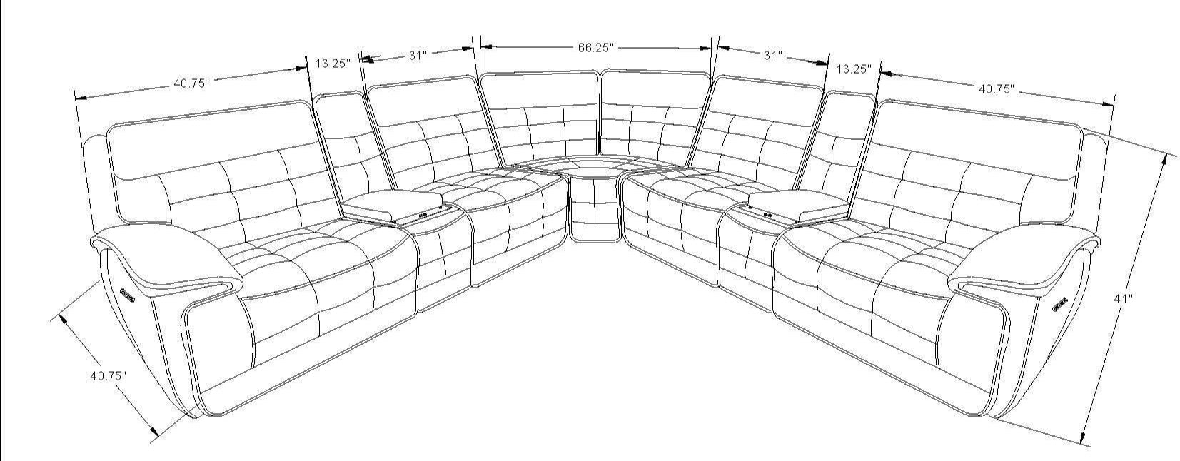 - Left/Right Power Recliner: 40.75"L x 40.75"W x 41"H