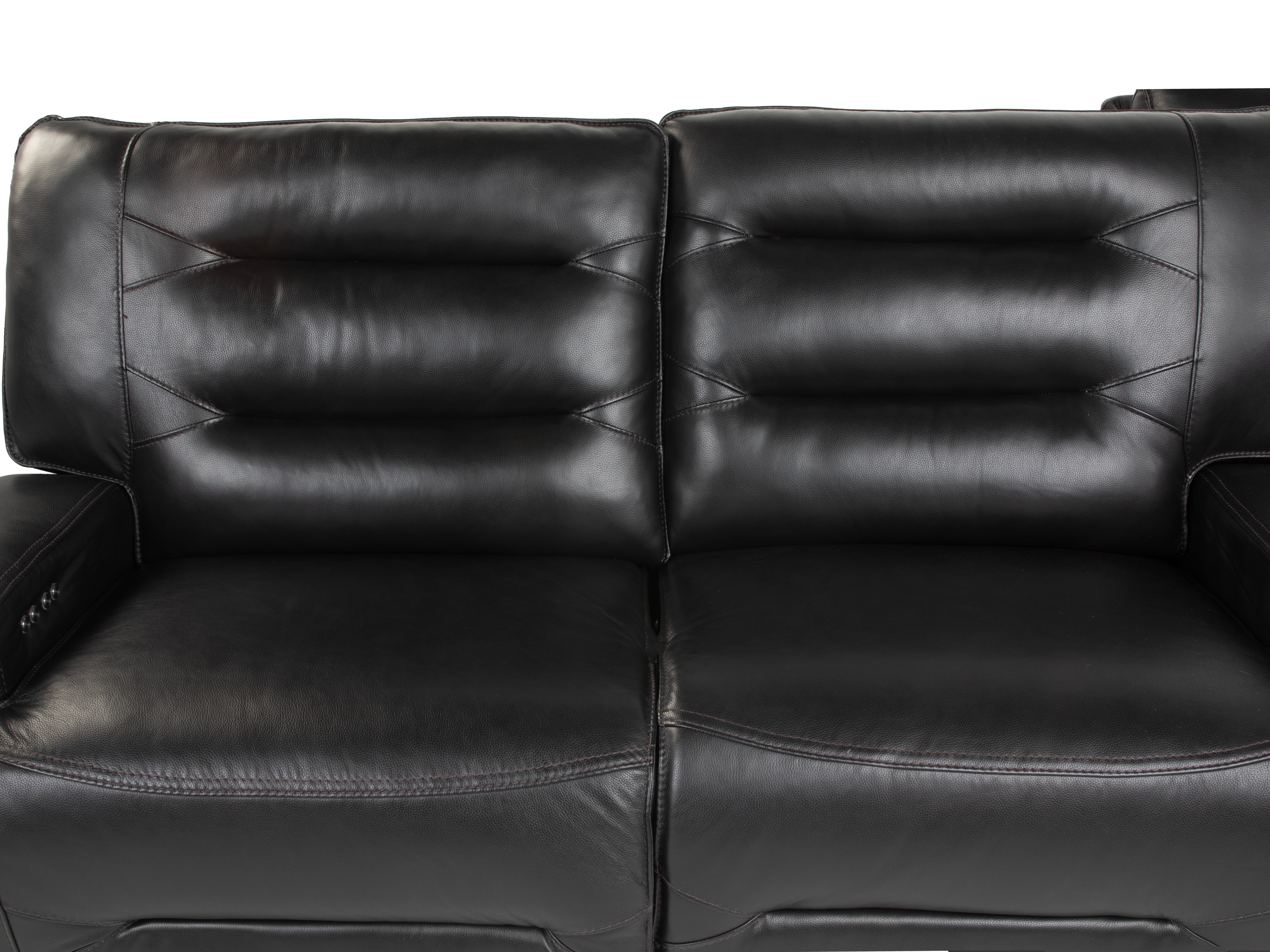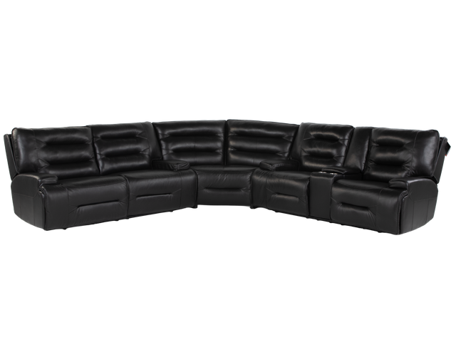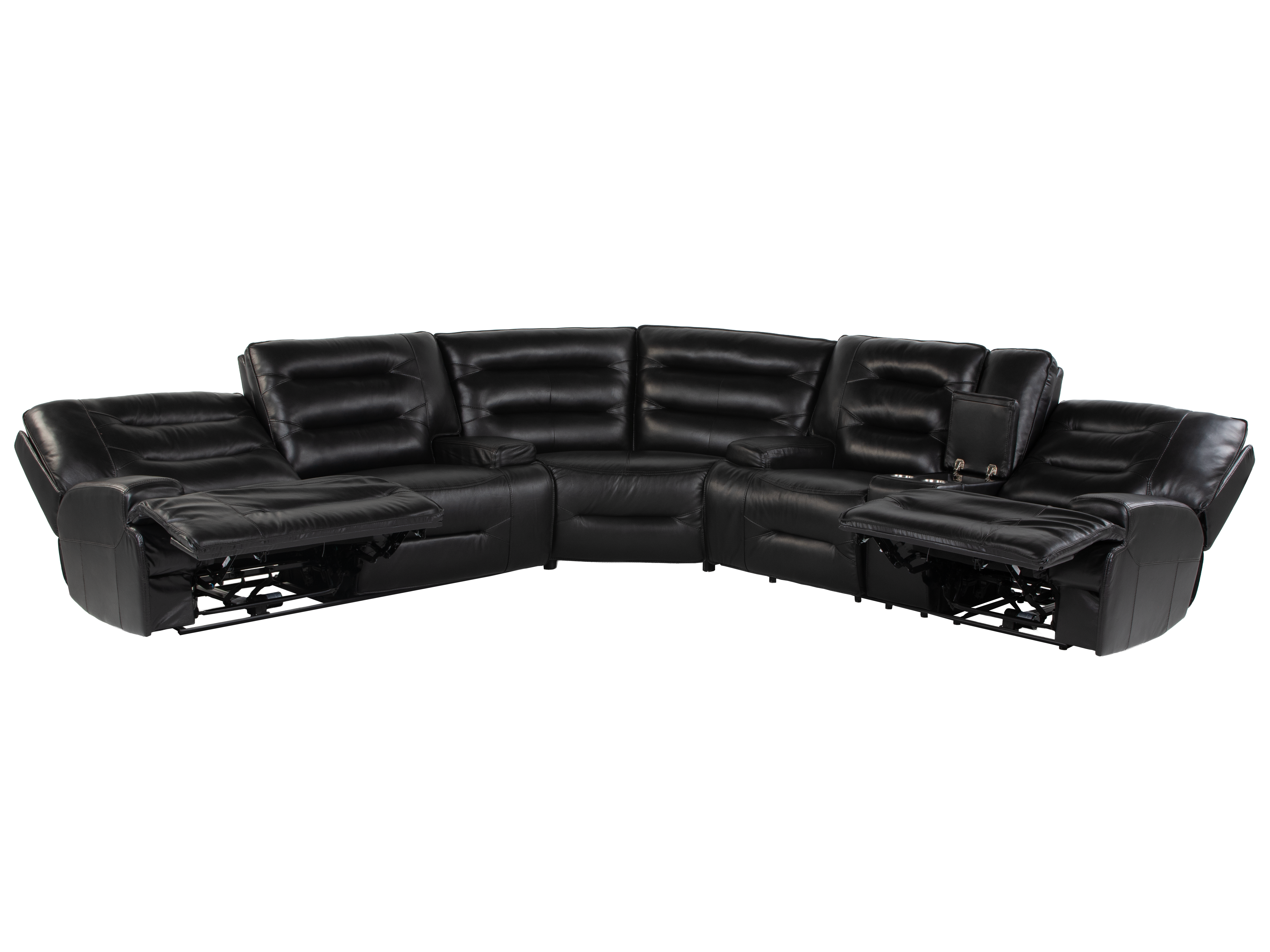 Modern Black Power Reclining Sectional Sofa with Console - Top Grain Leather