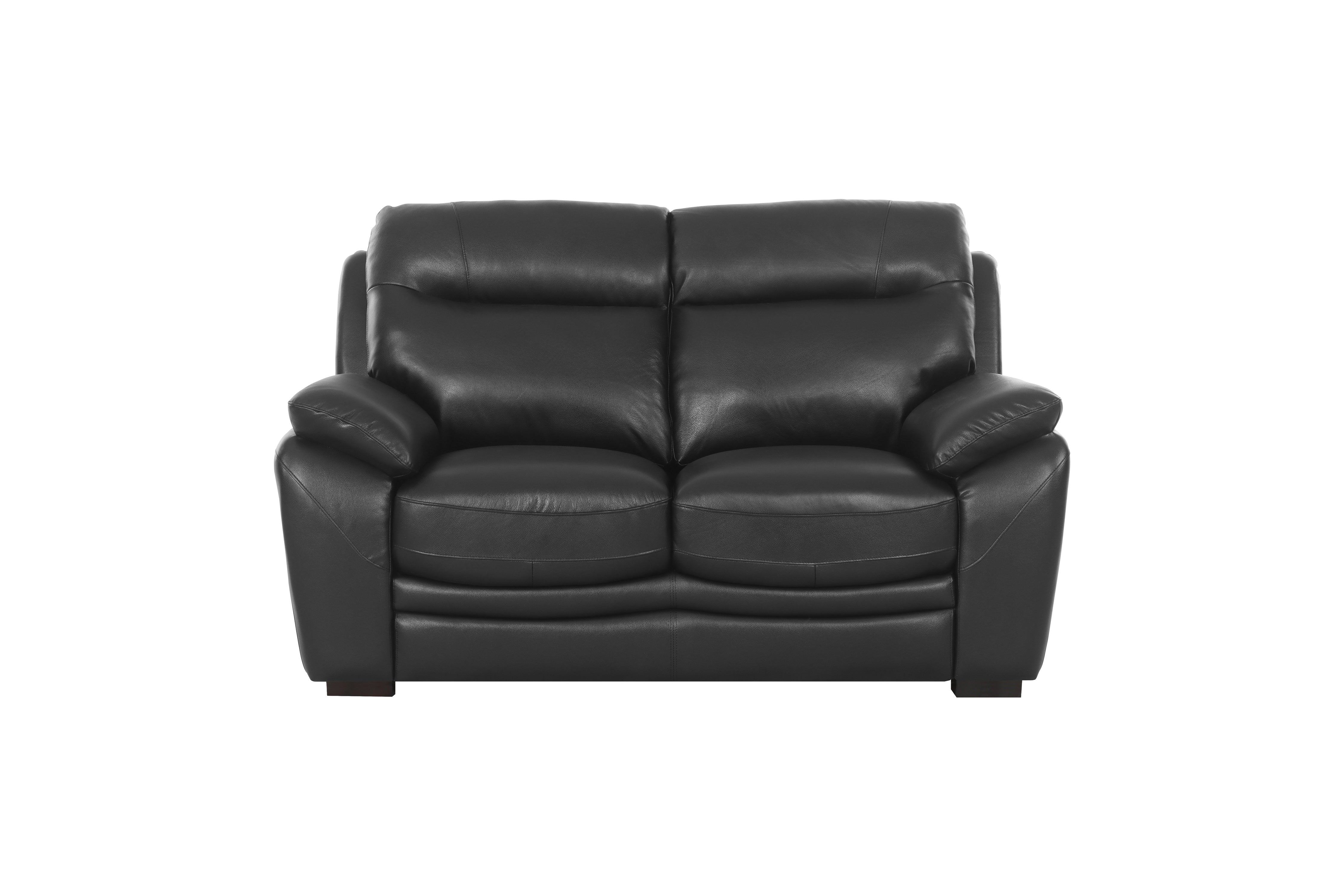 This black leather living room set works well in modern, contemporary, and transitional interiors thanks to its clean lines, padded arms, and classic black finish.