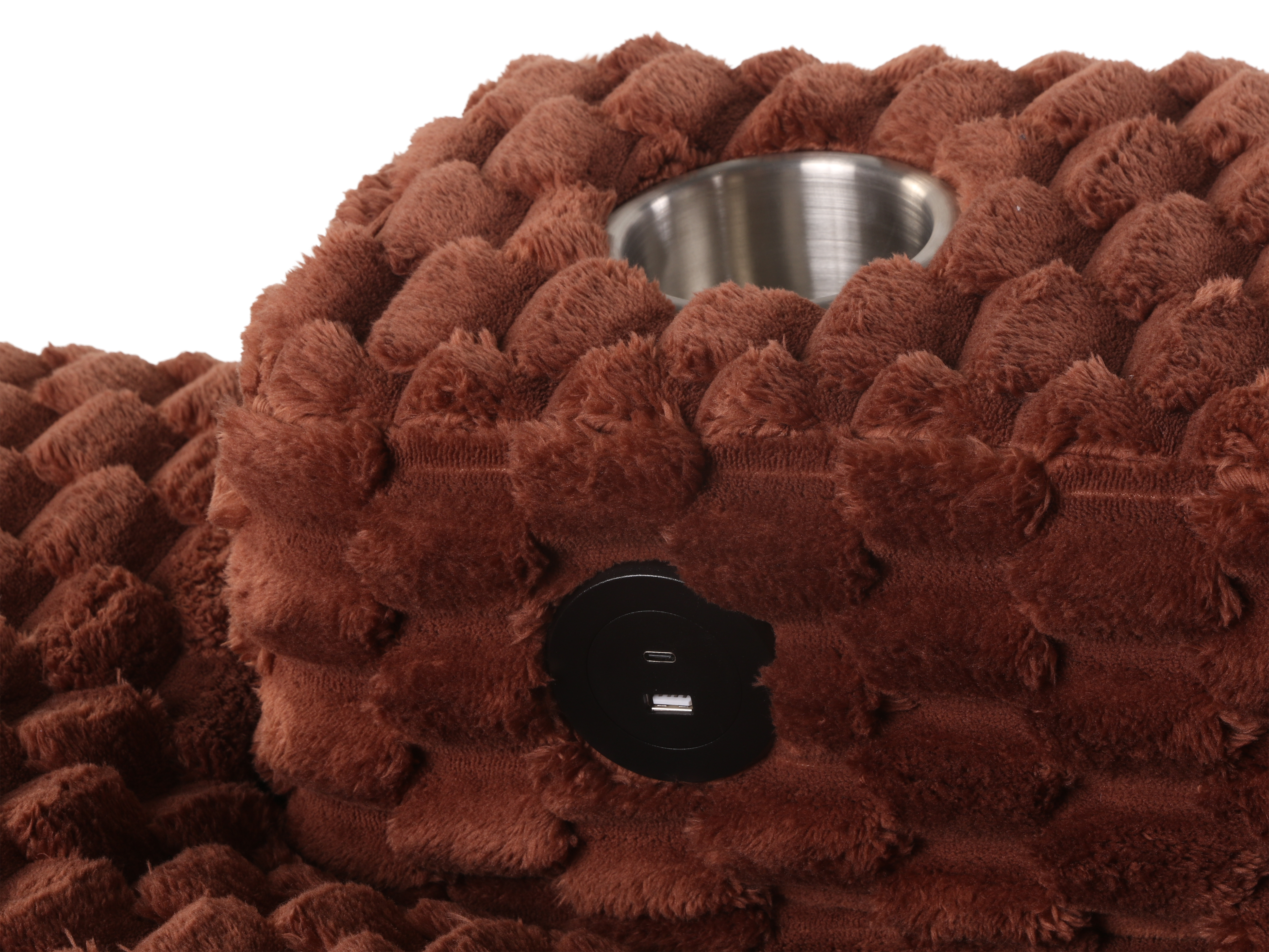 Designed with comfort and convenience in mind, it features built-in cup holders on the armrests to keep your drinks close at hand, and dual USB charging ports discreetly integrated inside the armrest—so you can relax without worrying about battery life.