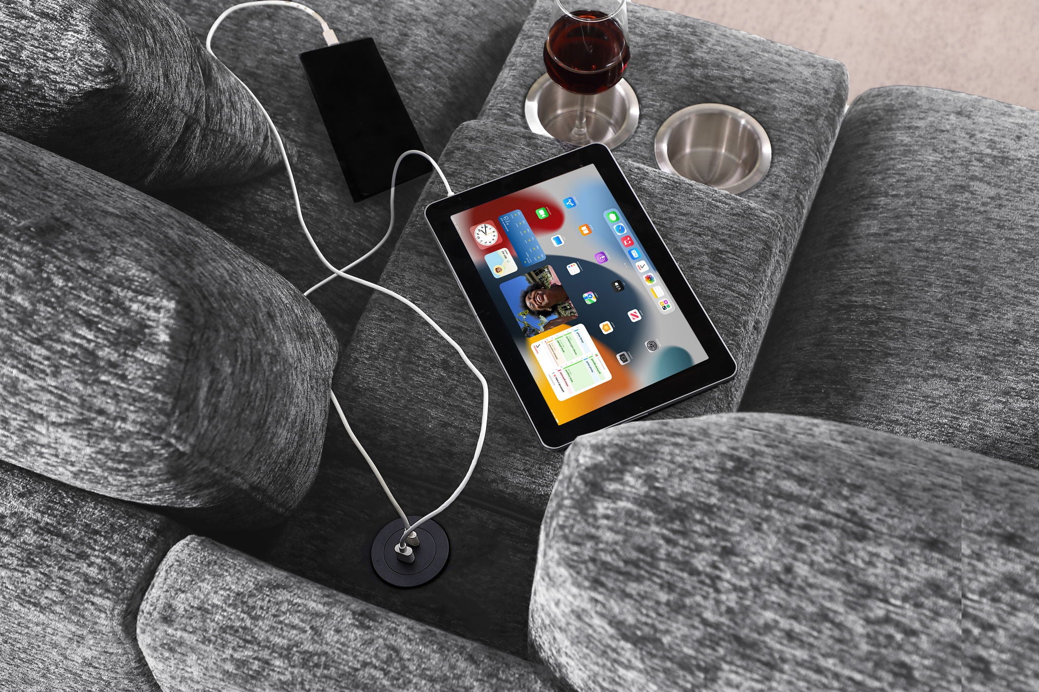 Celine - Corner Sectional Sofa With Right Facing Chaise, Cupholders, And Charging Ports - Dark Gray