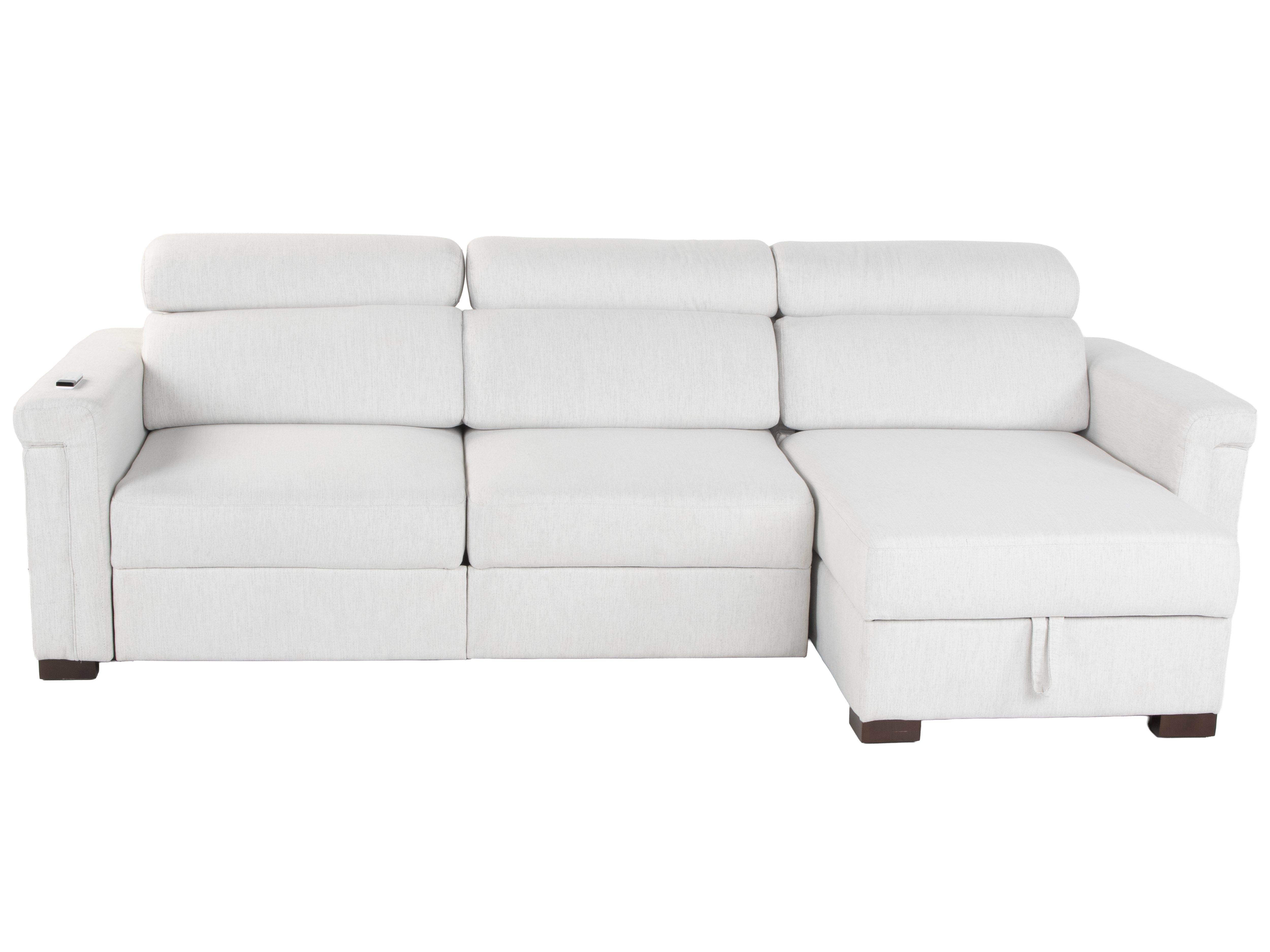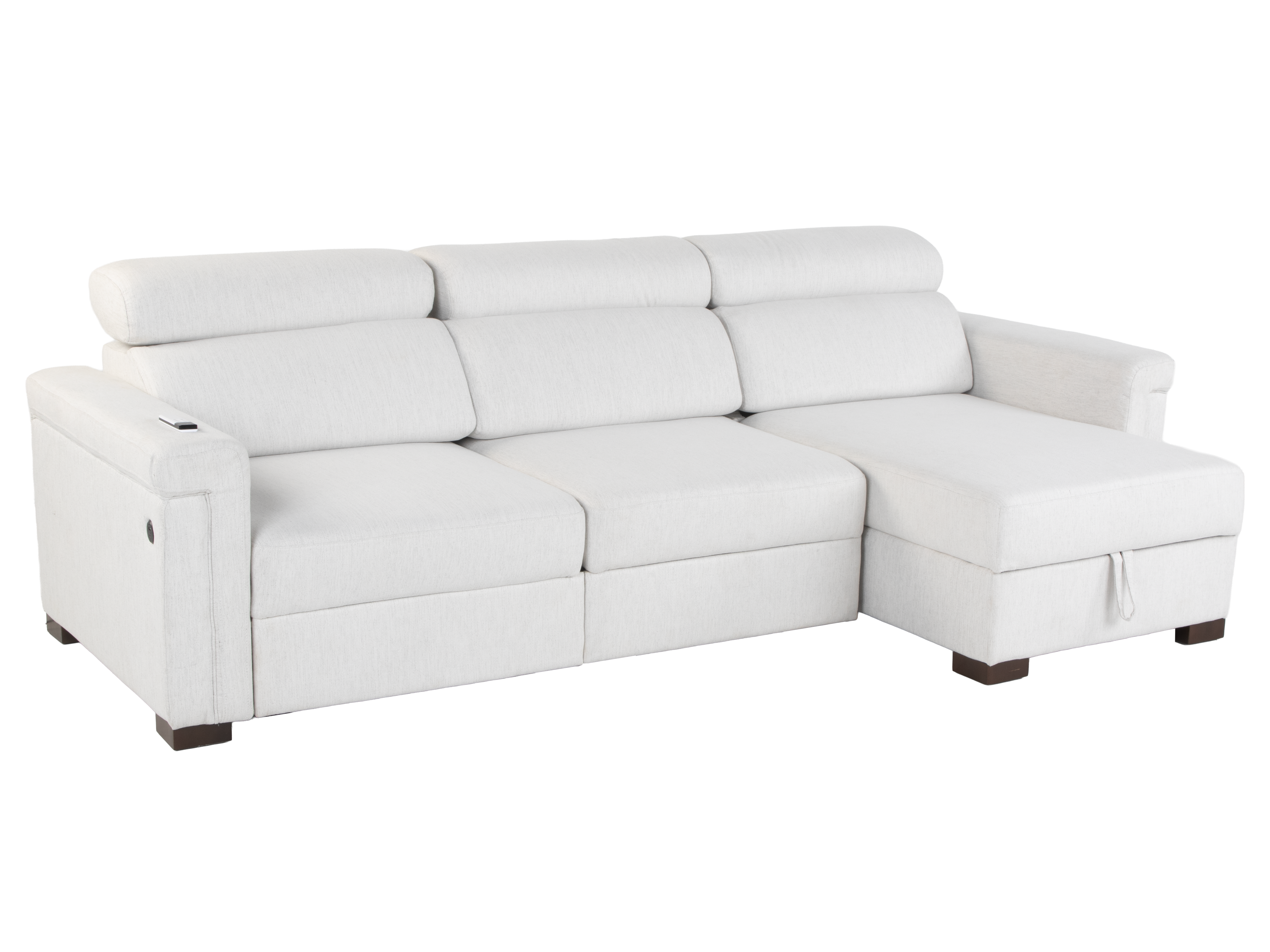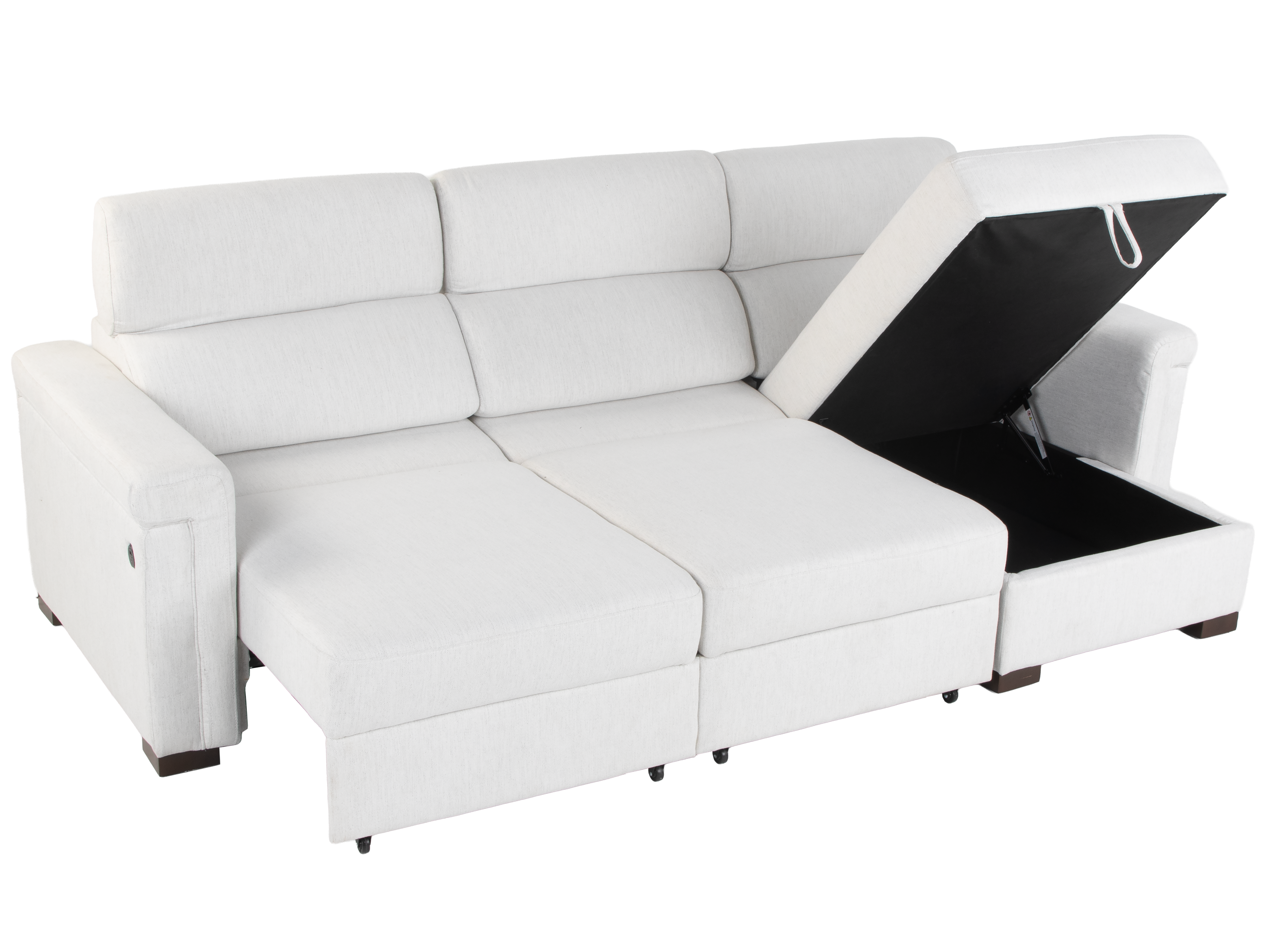 White Power Sleeper Sectional with Storage Chaise & USB Ports
