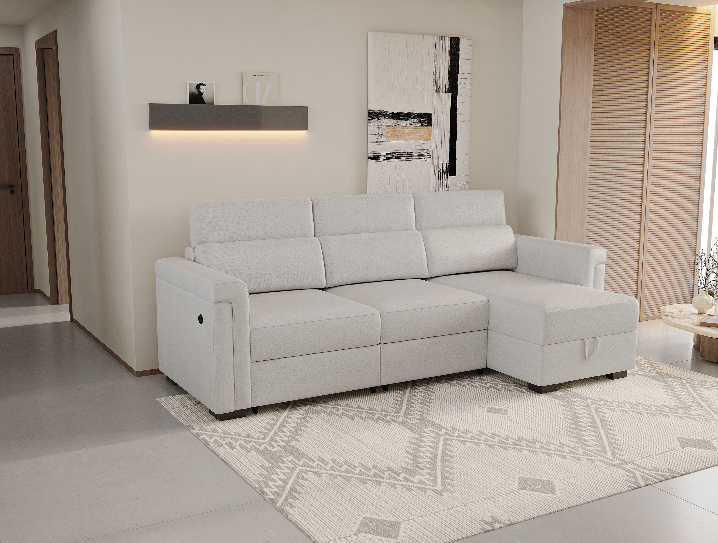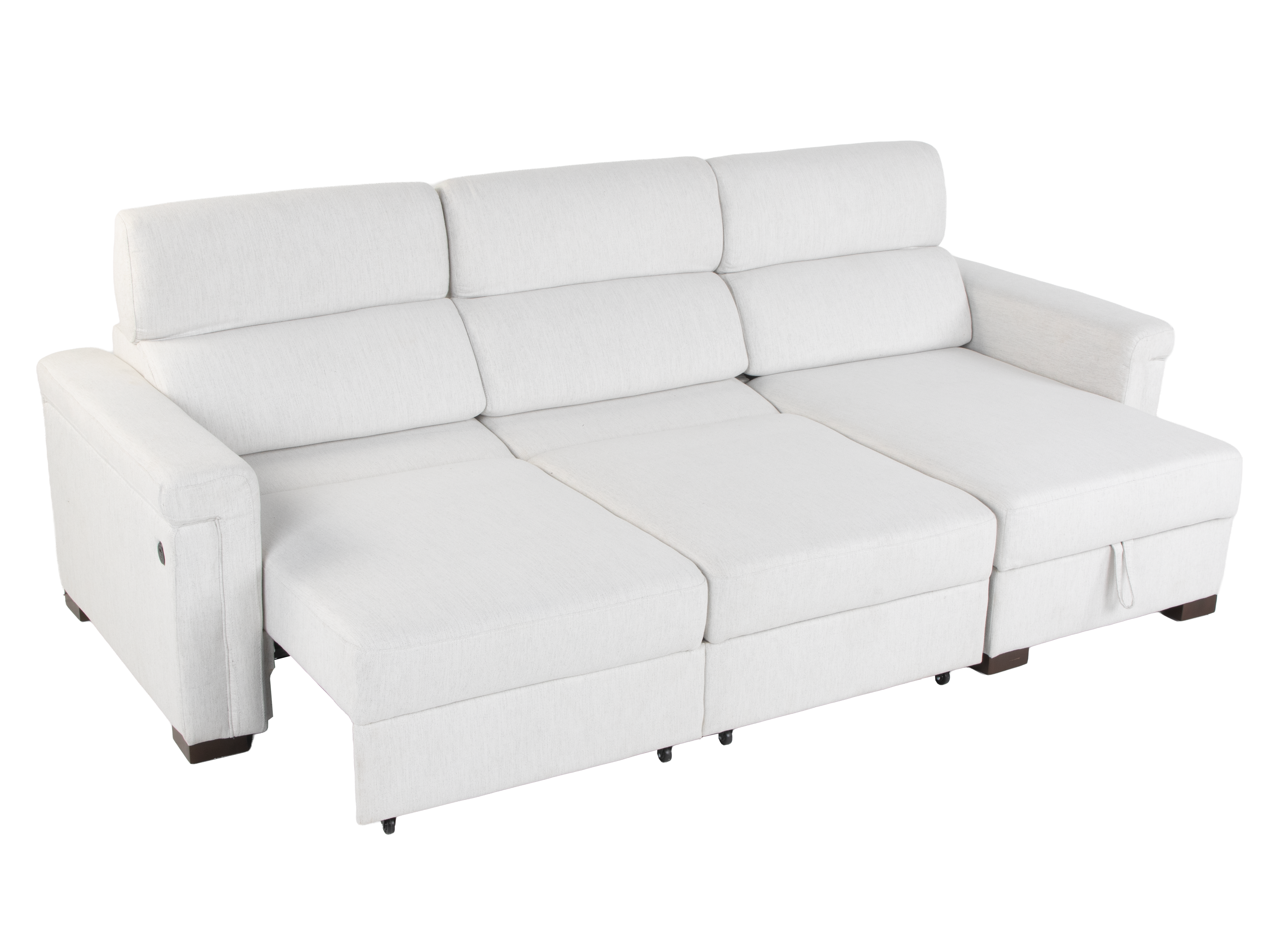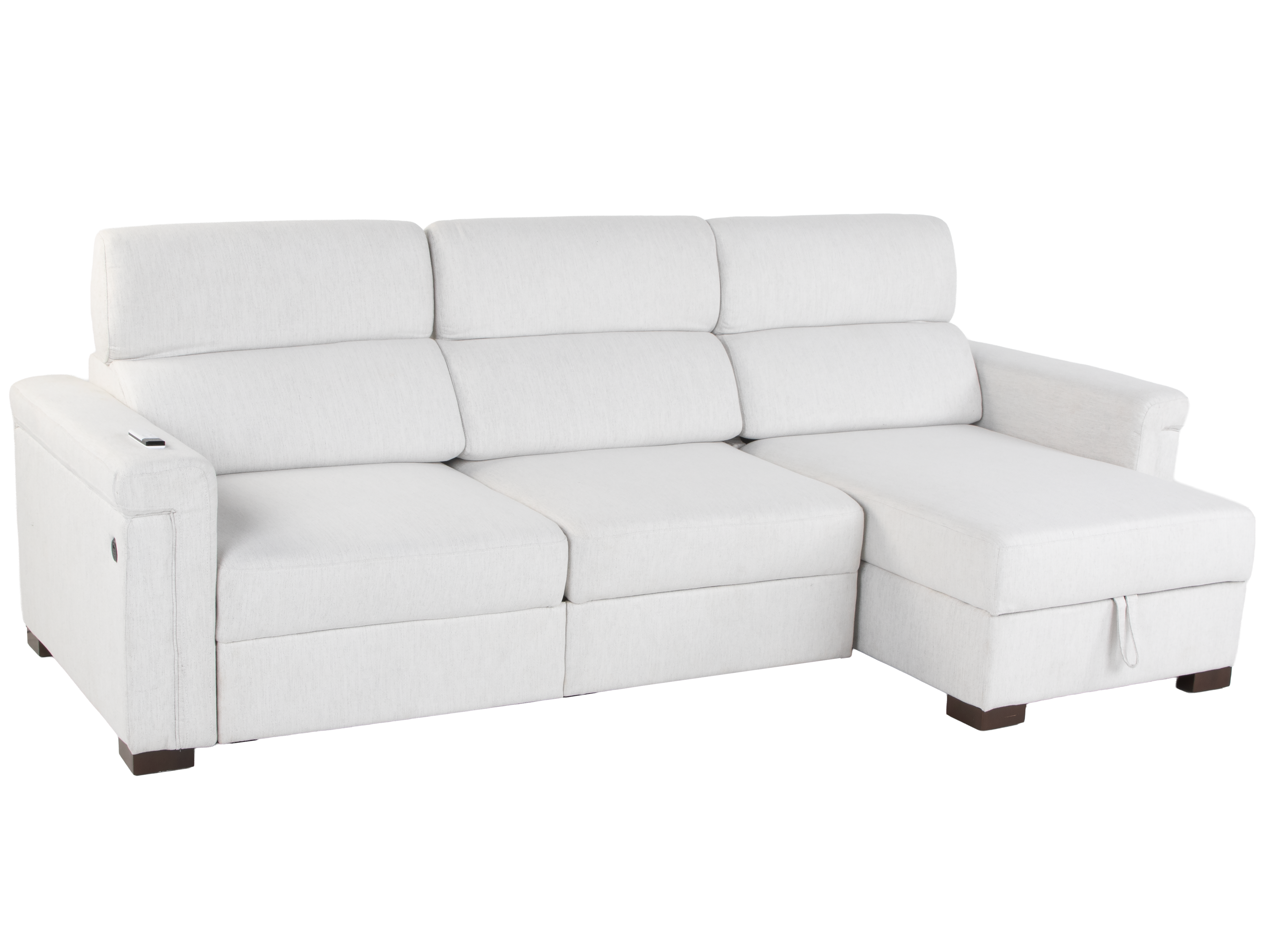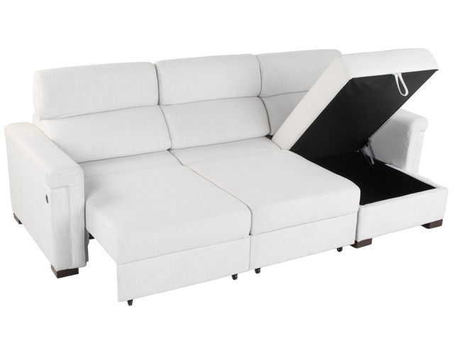 White Power Sleeper Sectional with Storage Chaise & USB Ports