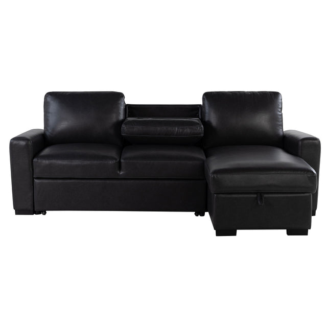 Montero - Sofa With Pull Out Bed, Drop Down Table, USB And Cup Holders, Storage Chaise - Charcoal Black