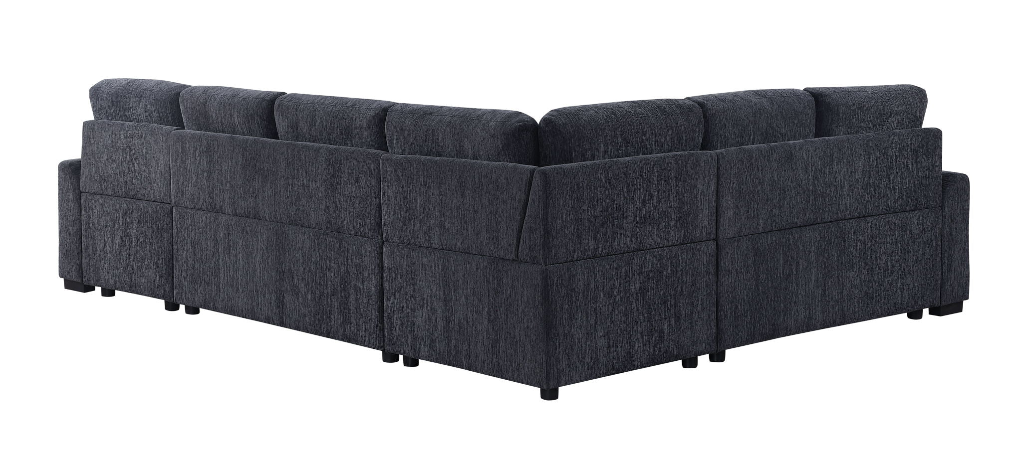 Nyhan - Upholstered Corner Sectional With Pull Out Loveseat And Storaged Chaise - Dark Gray