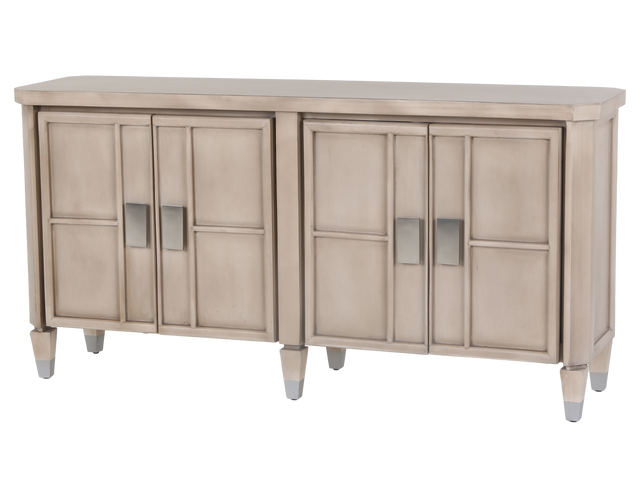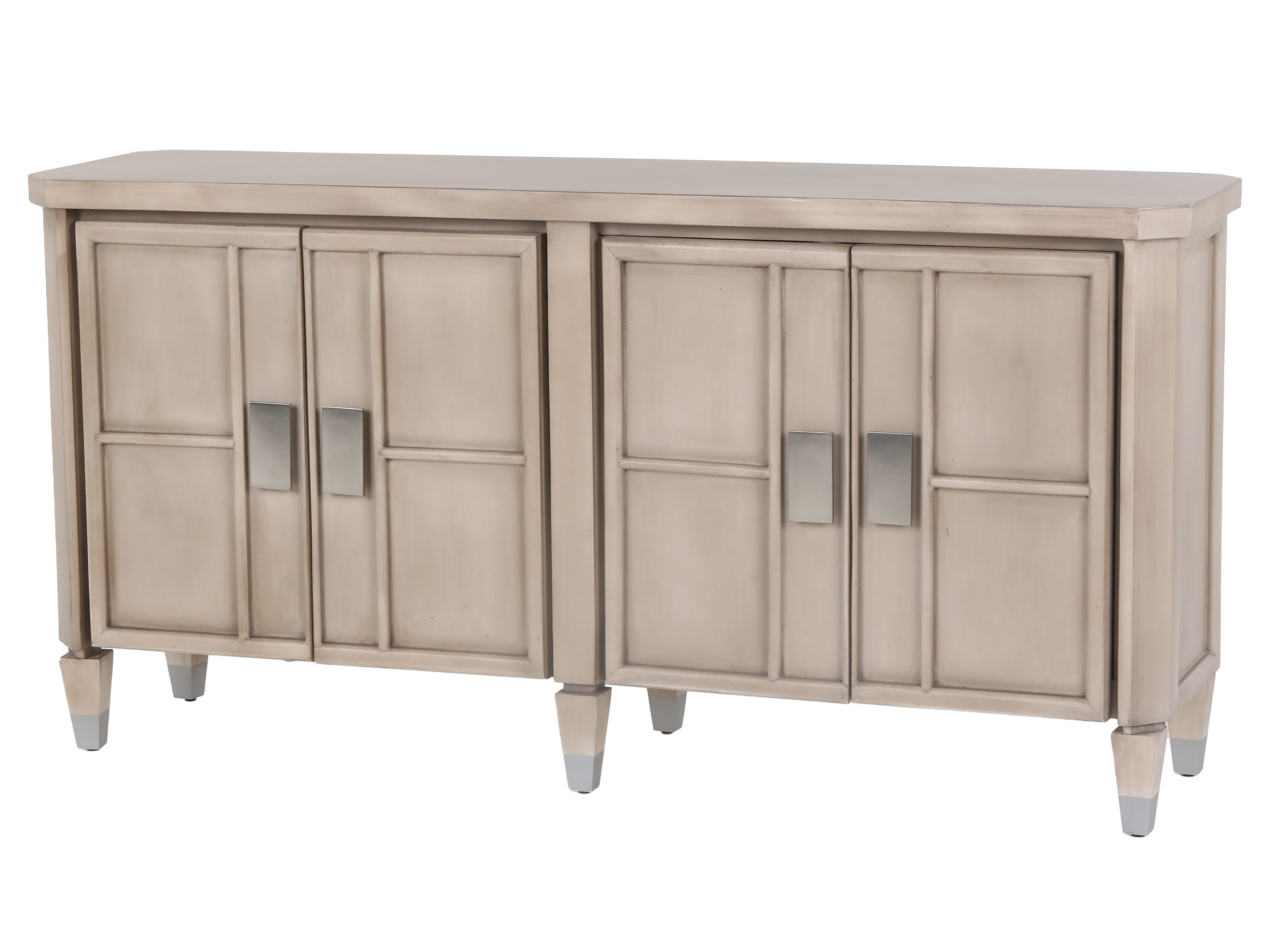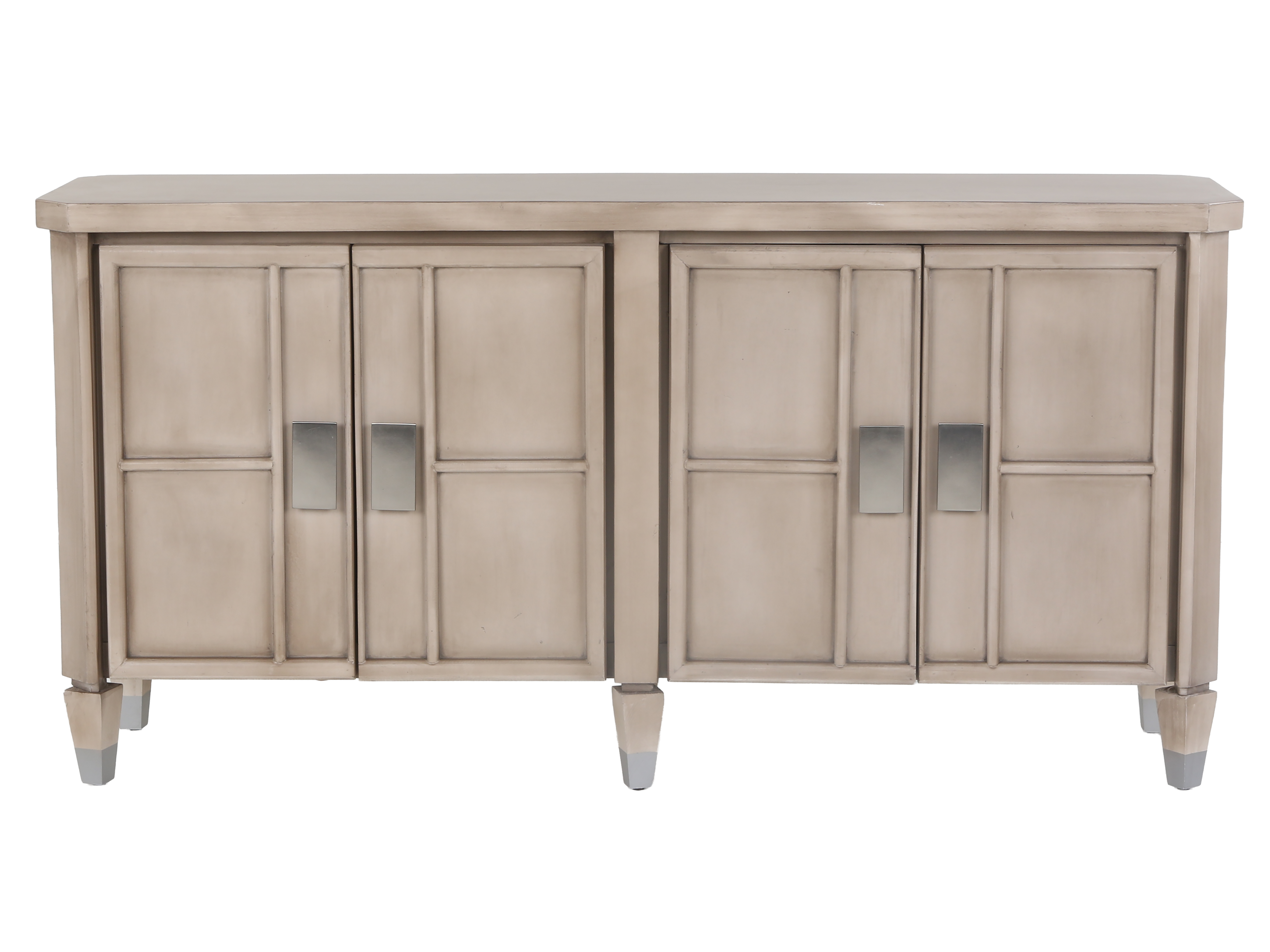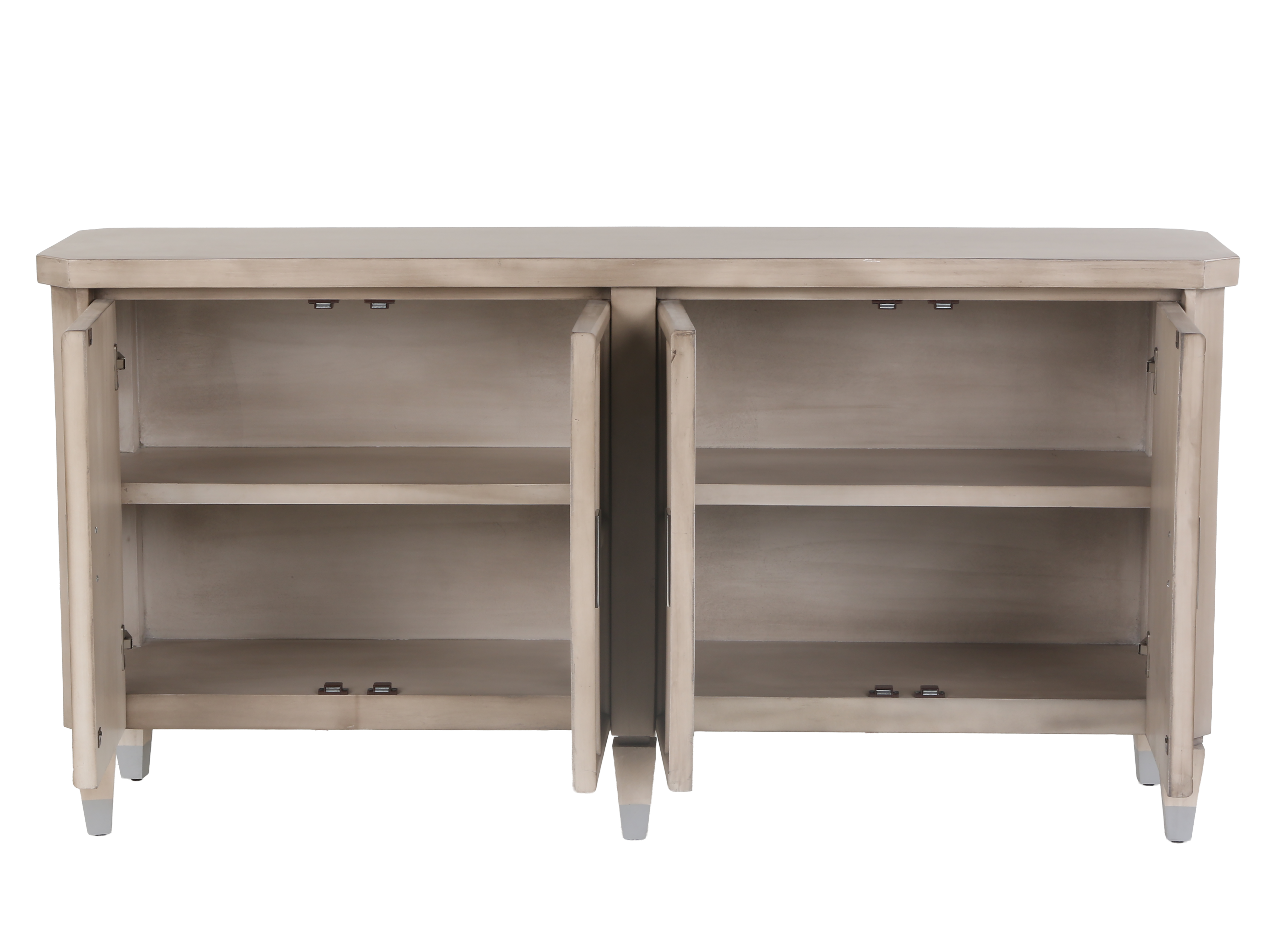 This 4-door sideboard blends contemporary elegance with functional storage. The clean panel design is accented by sleek square metal handles, while the tapered legs add a refined touch. Inside, adjustable shelving offers versatile space for dinnerware, media accessories, or household essentials. Perfect for dining rooms, living rooms, or hallways, this piece delivers both style and practicality.