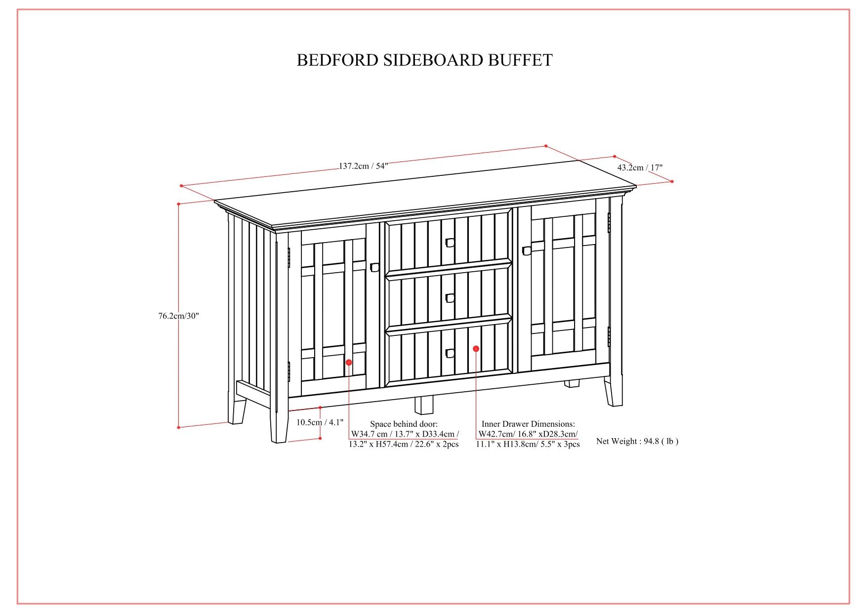 Bedford - Sideboard Buffet - Dark Tobacco Brown