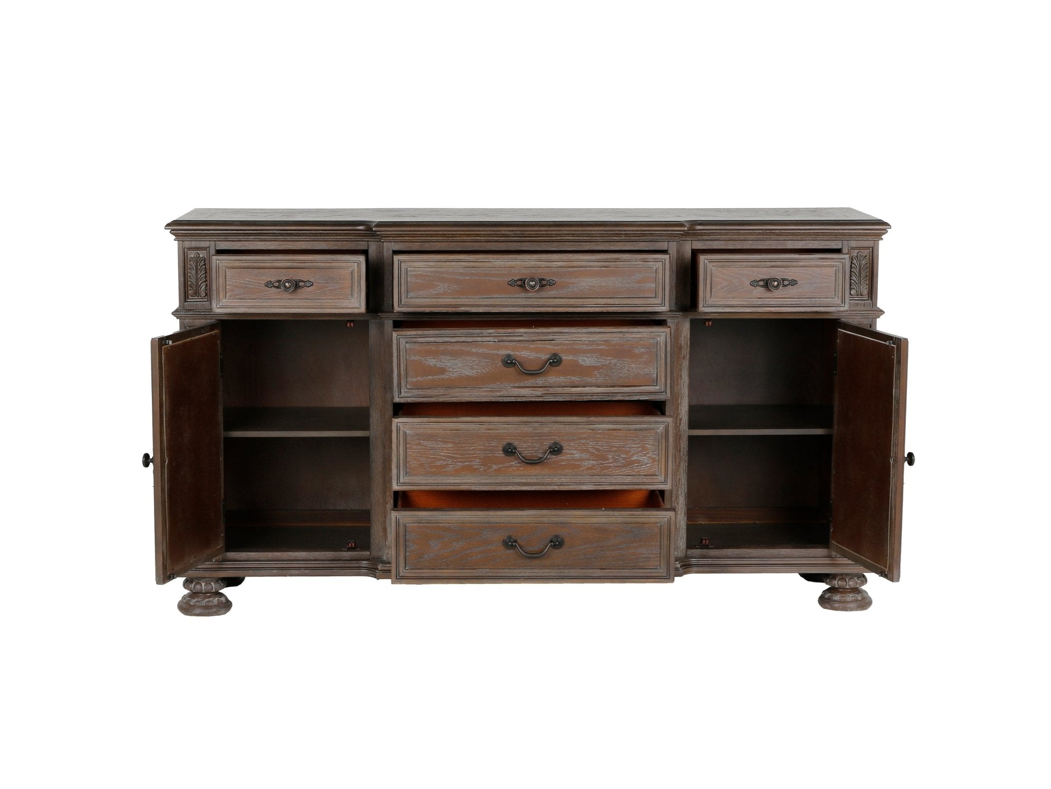 Reclaimed Grey Oak Scroll-Panel Server / Sideboard (7-Drawer)