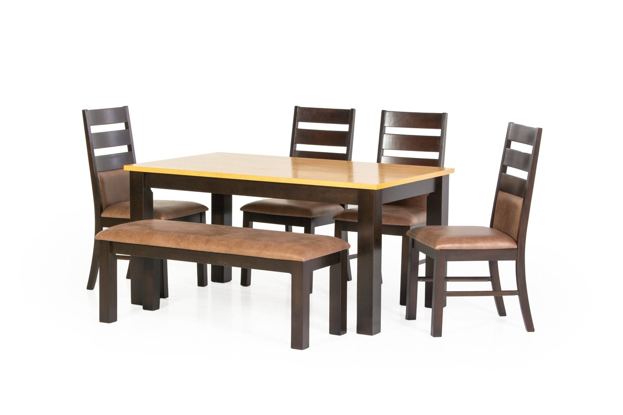 6-Piece Beech & Cappuccino Dining Set with Bench (Table + 4 Chairs + Bench)