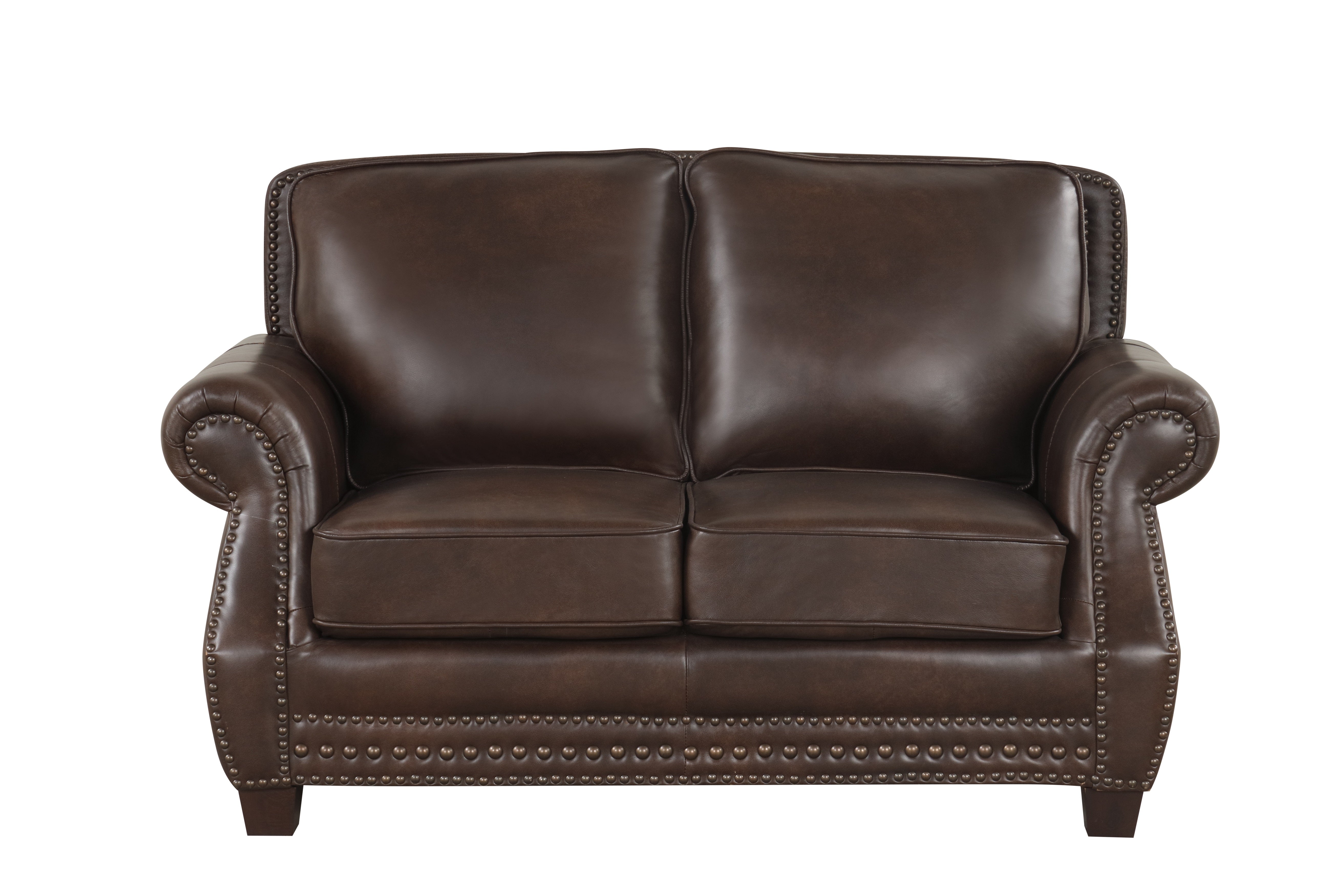 Bring classic club-room character and everyday comfort into your home with this rich brown top grain leather living room set. The collection includes a generously scaled sofa, loveseat, and matching recliner chair, all tailored in smooth top grain cow leather on the seating surfaces with a durable leather-match PVC on the sides and back for a luxurious look that’s made for real life.