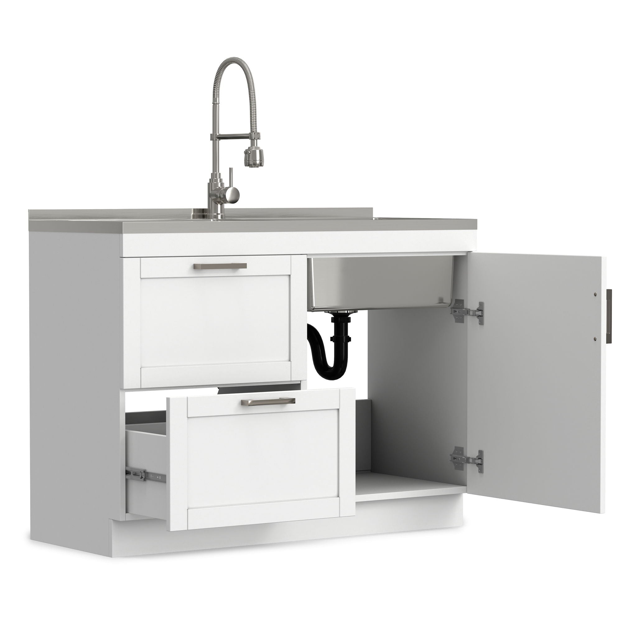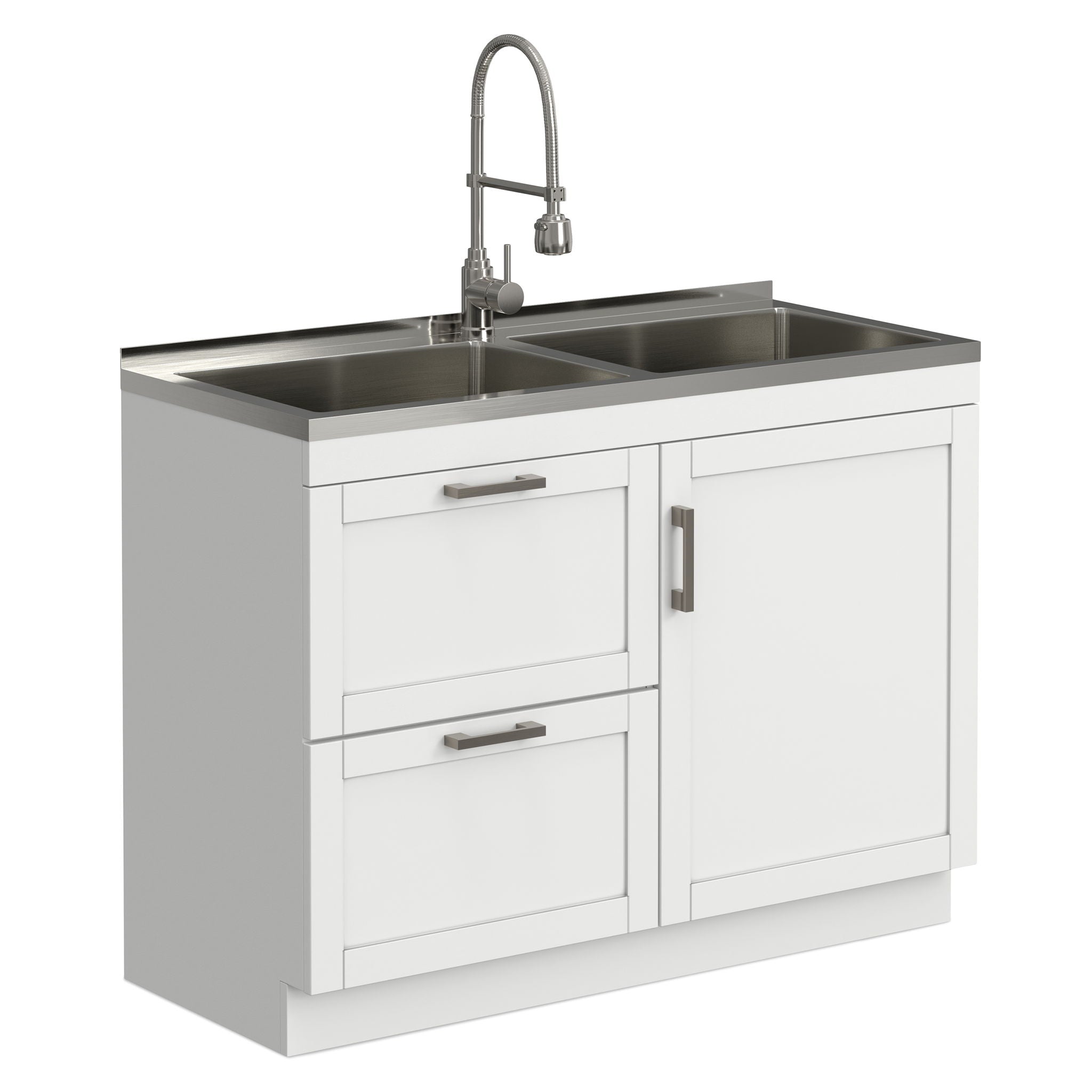 Hennessy - Laundry Utility Sink And Cabinet With Dual Sink And Pull Out Faucet - White