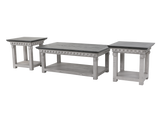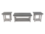 Experience the timeless appeal and rustic beauty of our meticulously crafted 3-Piece Coffee Table Set. Made from solid wood and elegantly finished in rustic gray, this set enhances your living space with its charming countryside aesthetic. The centerpiece is a sturdy rectangular coffee table with a richly textured tabletop, adorned with a darker gray shade for added depth and character. Accompanying the coffee table are two matching end tables, meticulously crafted with attention to detail, creating a cohesive and harmonious arrangement. With exceptional durability and practicality, this set offers a stylish solution for holding beverages, books, and other items within easy reach. Elevate your home with the captivating visual contrast and perfect blend of style and functionality that this coffee table set provides.