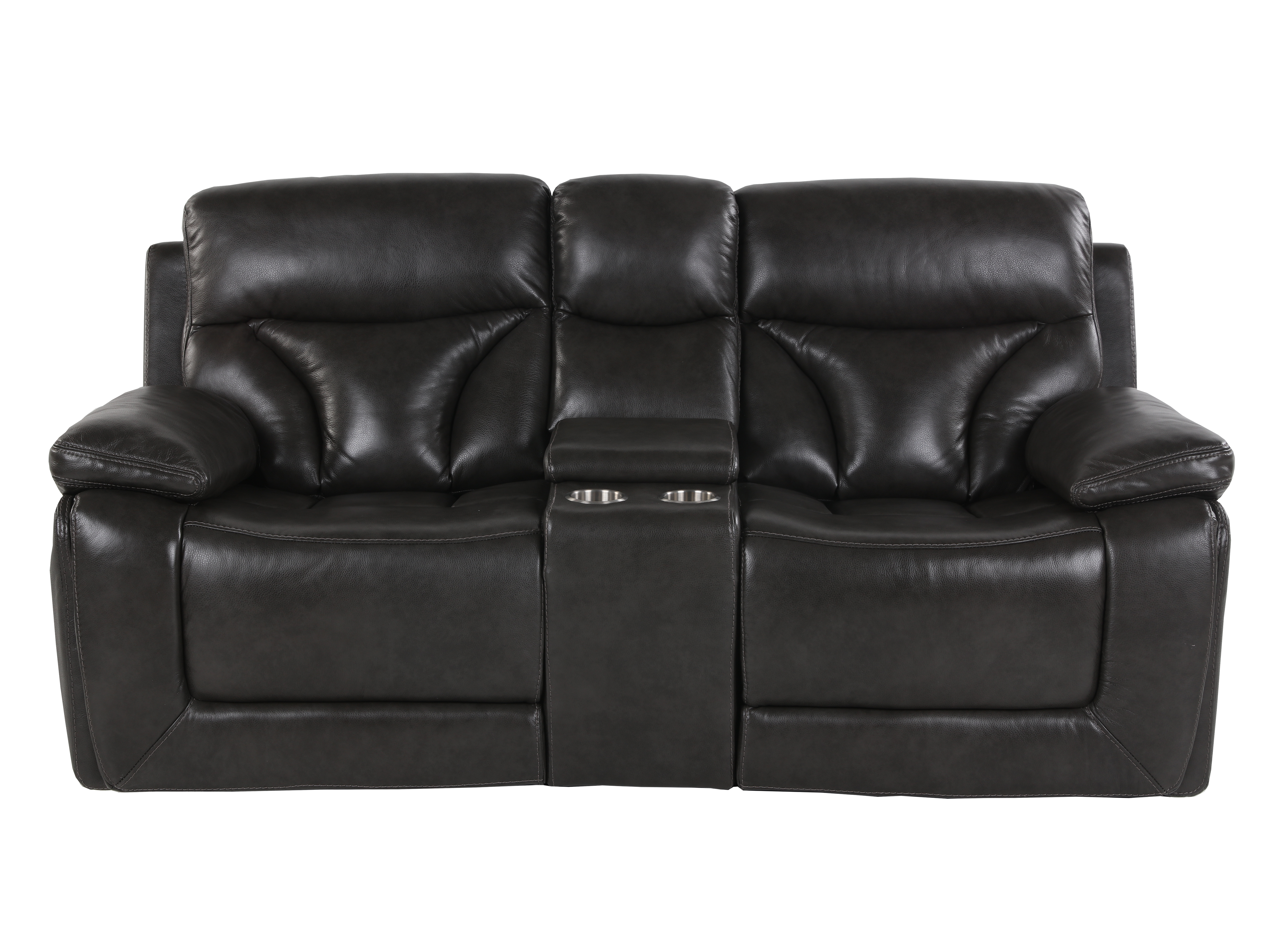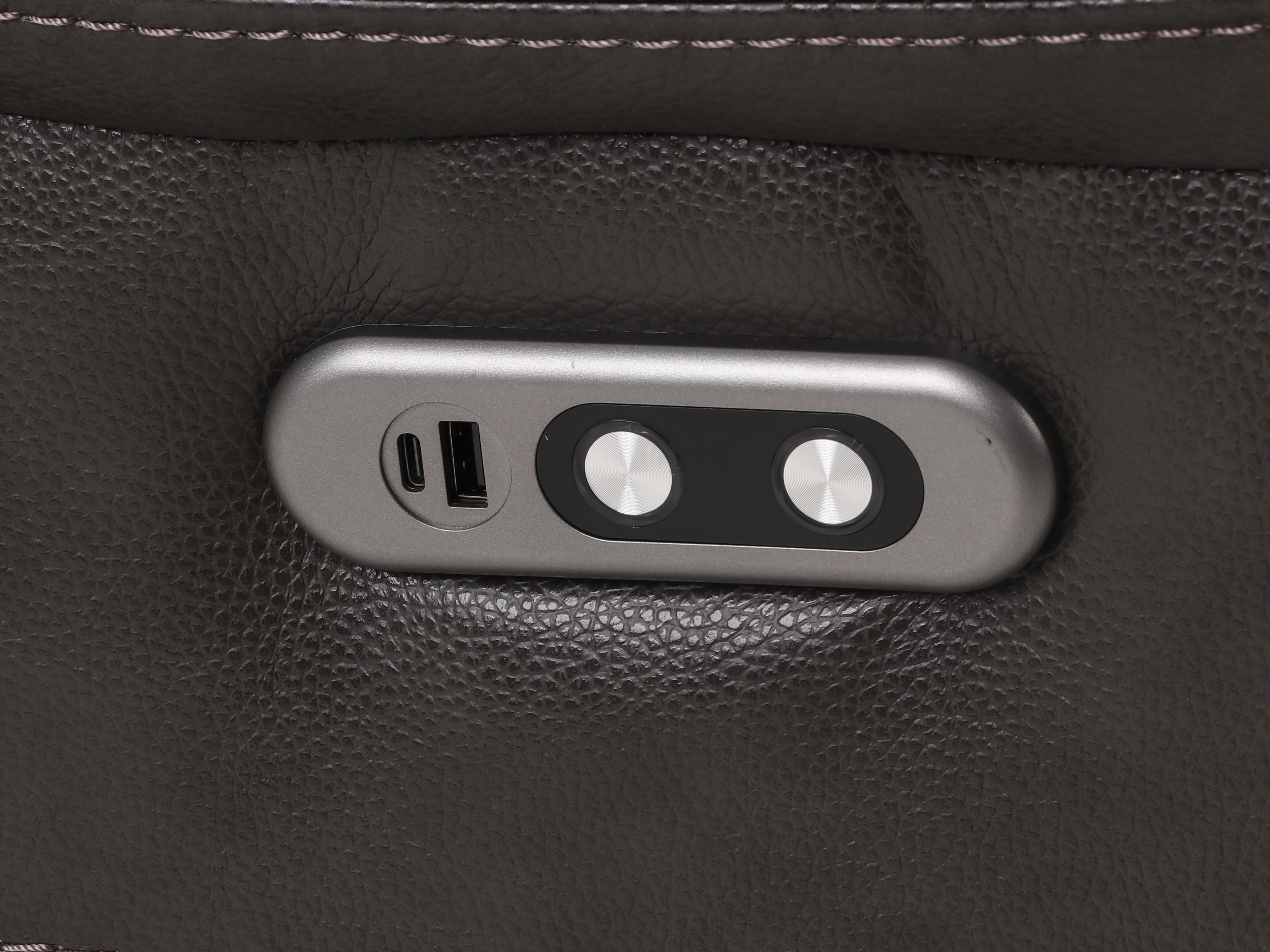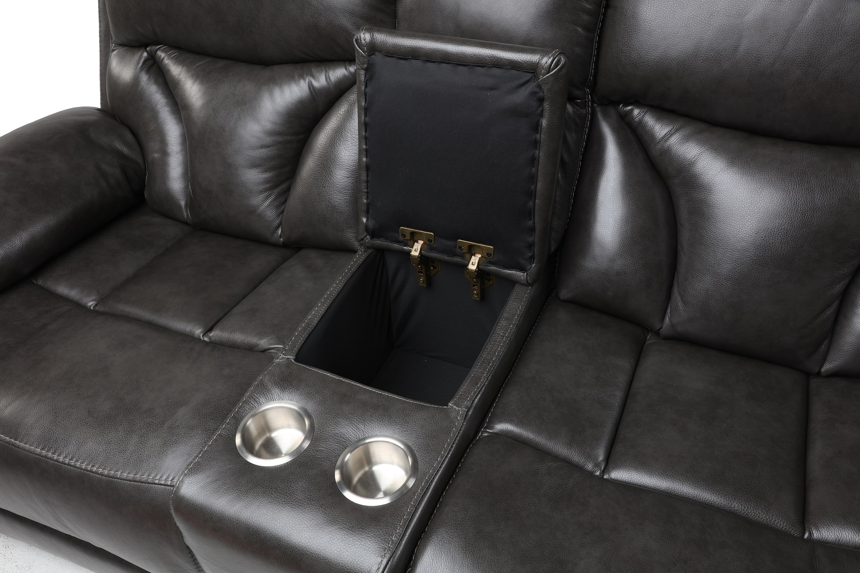 This 3-piece power reclining living room set, featuring top grain leather in a sophisticated brown color, is designed to elevate both the comfort and elegance of your space. The set includes a power reclining sofa, a power reclining chair, and a stationary loveseat, making it perfect for entertaining guests or simply unwinding after a long day. Although the loveseat does not recline, it features a storage console and 2 cup holders. Upholstered in luxurious top grain leather, this set promises not only style but also durability and ease of maintenance, making it a perfect choice for any modern living area. The push button controls with USB charging port keep your devices powered up, while the ergonomic design ensures optimal comfort.