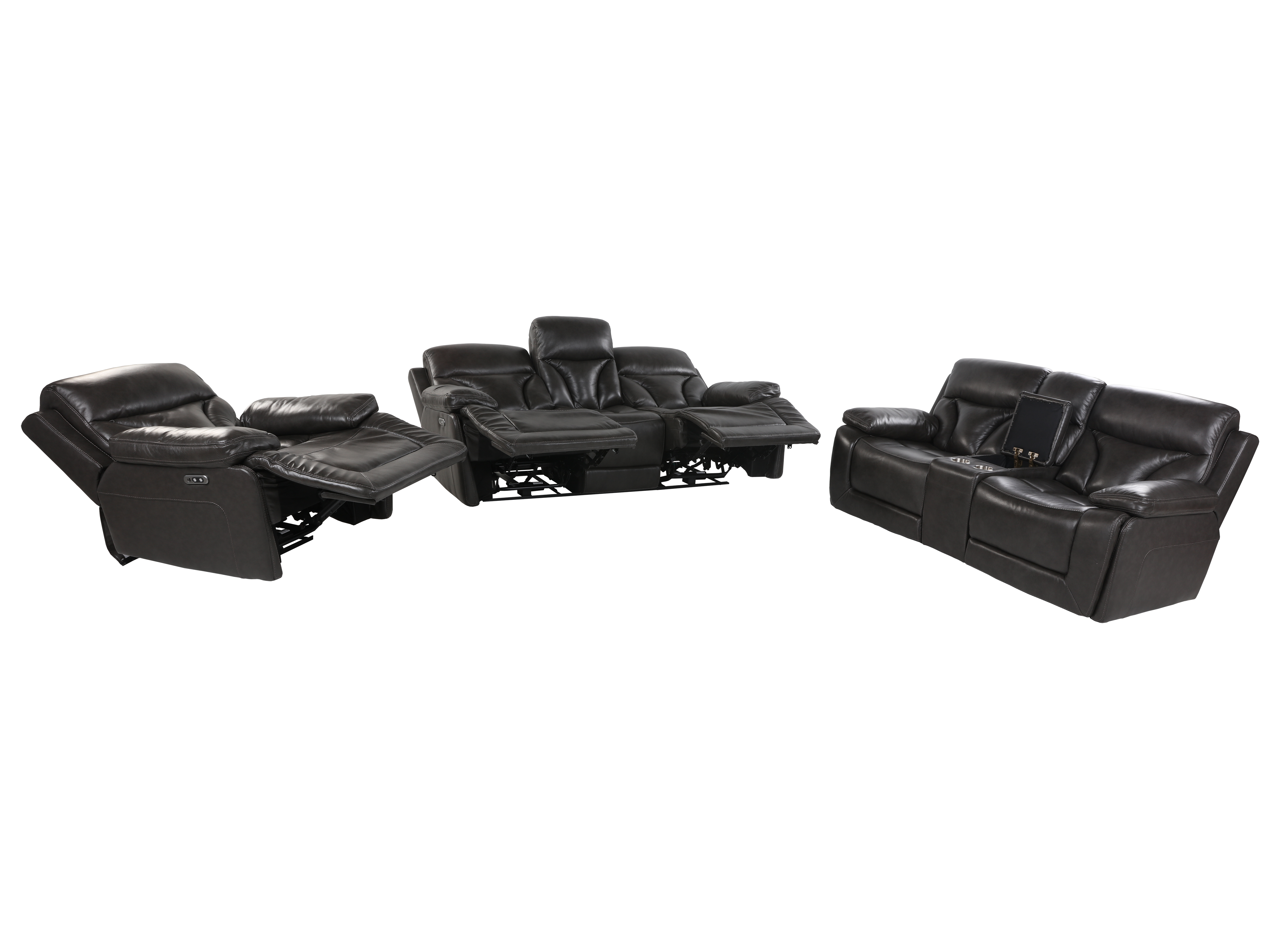 Includes: Power reclining sofa, Power reclining chair, Stationary loveseat.