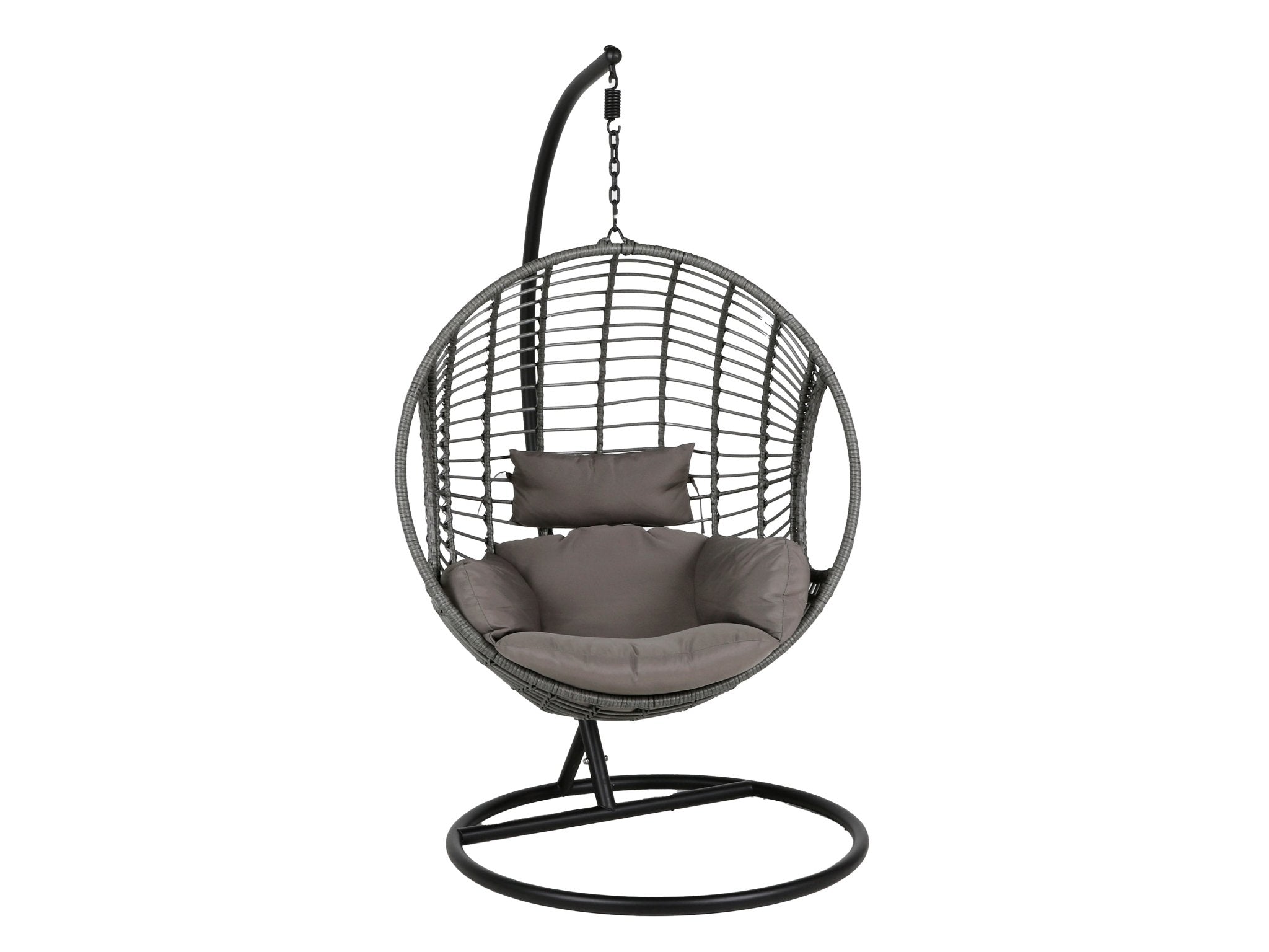 Combine functionality, style, and comfort seamlessly with this impeccable outdoor hanging chair. Its inviting basket shape not only imparts a delightful transitional appearance to your patio but also ensures unparalleled comfort. The chair is skillfully crafted with intricately woven wicker and a robust metal frame, guaranteeing hours of blissful relaxation whenever desired. Whether indoors or outdoors, it serves as an ideal addition to any setting. The chair is expertly constructed using weather-resistant PE wicker meticulously wrapped around a durable, powder-coated iron frame. Additionally, the cushion is fashioned from solution-dyed polyester, offering both durability and easy maintenance.