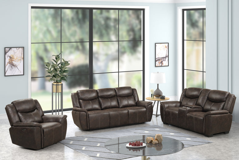 Includes: Power reclining sofa, Power reclining chair, Stationary loveseat.