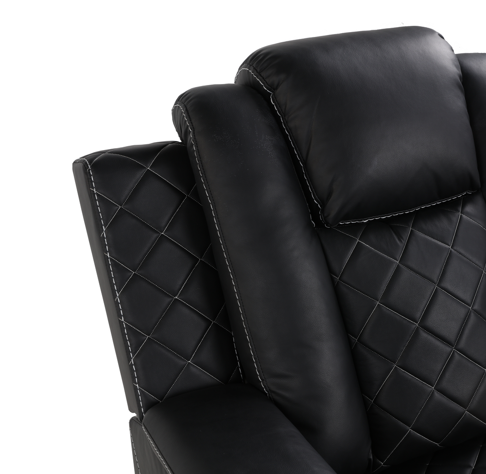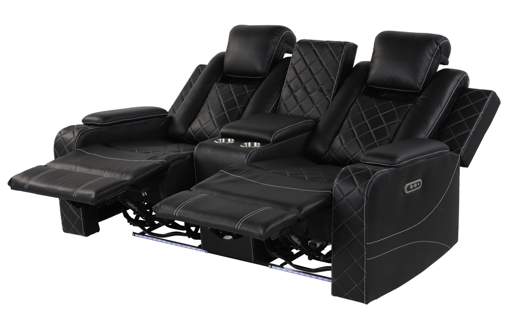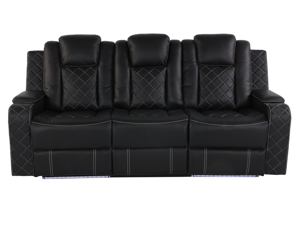 Black Power Reclining Living Room Set with LED Lights, Speakers, and Power Headrest