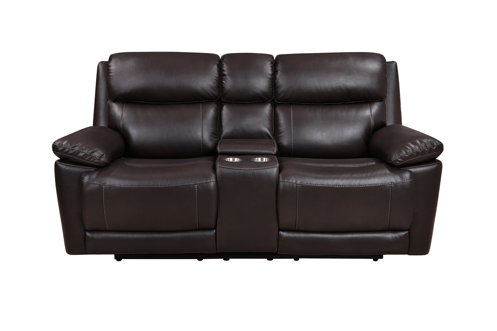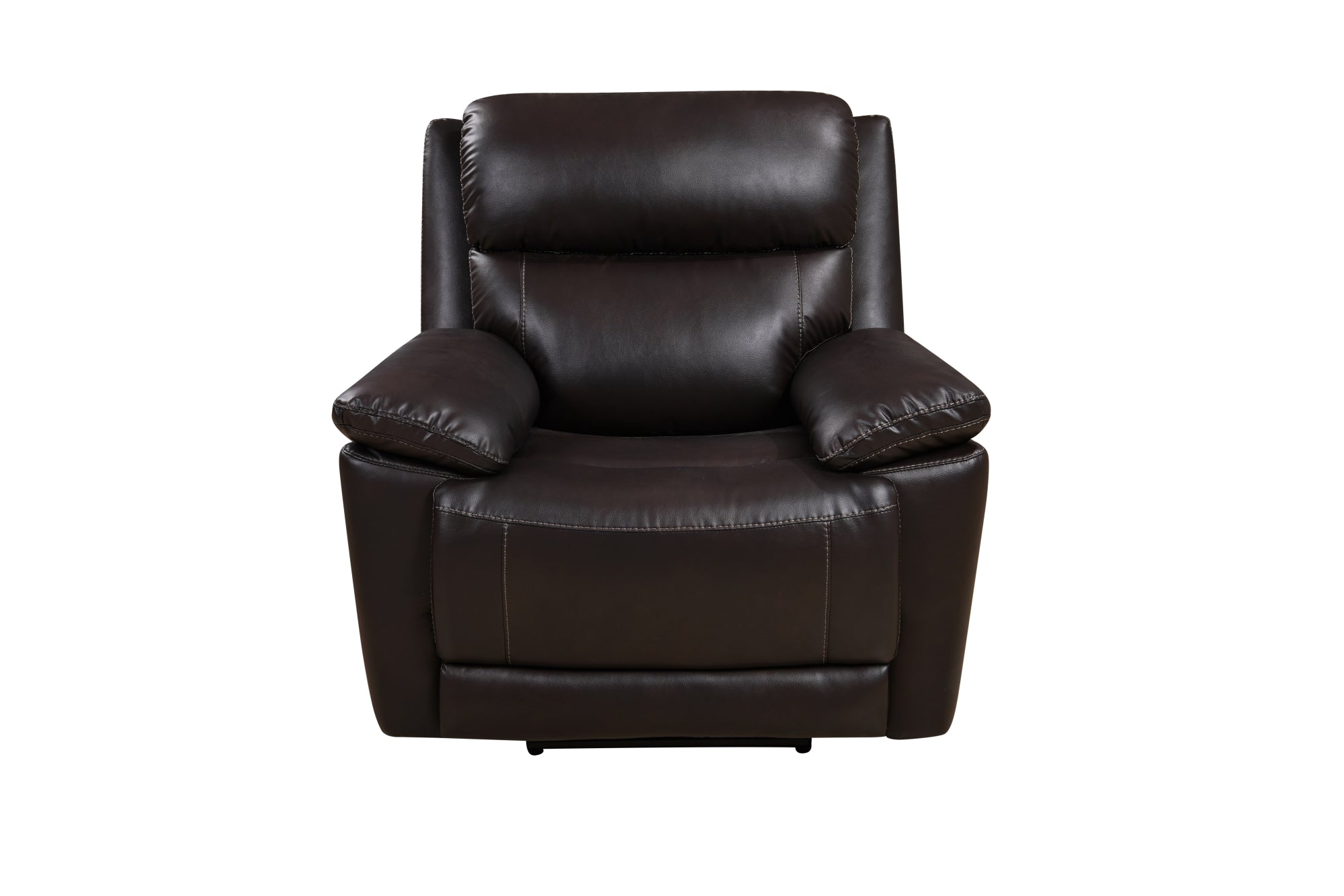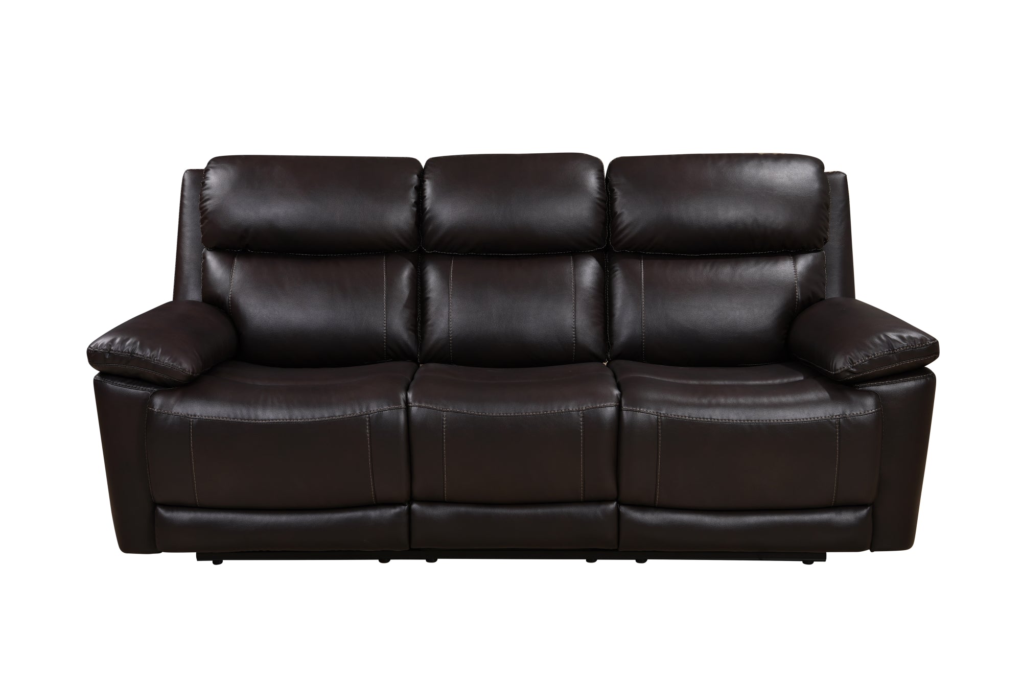 This 3 Piece Power Reclining Living Room Set includes a power reclining sofa, a lower reclining chair, and a stationary loveseat, all with thick padding and gel leather upholstery for superior comfort. The brown color complements any décor and can bring any living space to life. Please note that the loveseat does not have a reclining function.