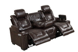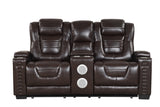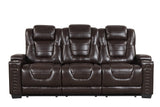 This luxe 3 piece living room set is perfect for comfort and convenience. Faux leather in a rich brown color is durable and stylish. Relaxation is at your fingertips with power reclining, USB charging ports, and power adjustable headrests. Additional features like storage, cup holders, and Bluetooth speakers make this set a must-have.