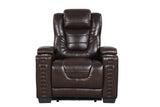 Includes: Power reclining sofa, Power reclining loveseat, Power reclining chair.