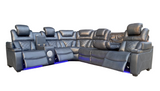 Transform your living room into the ultimate home theater experience with the Power Reclining Sectional. Crafted in sleek dark blue faux leather-look upholstery with elegant diamond stitching, this modern sectional blends high-end comfort with state-of-the-art features.