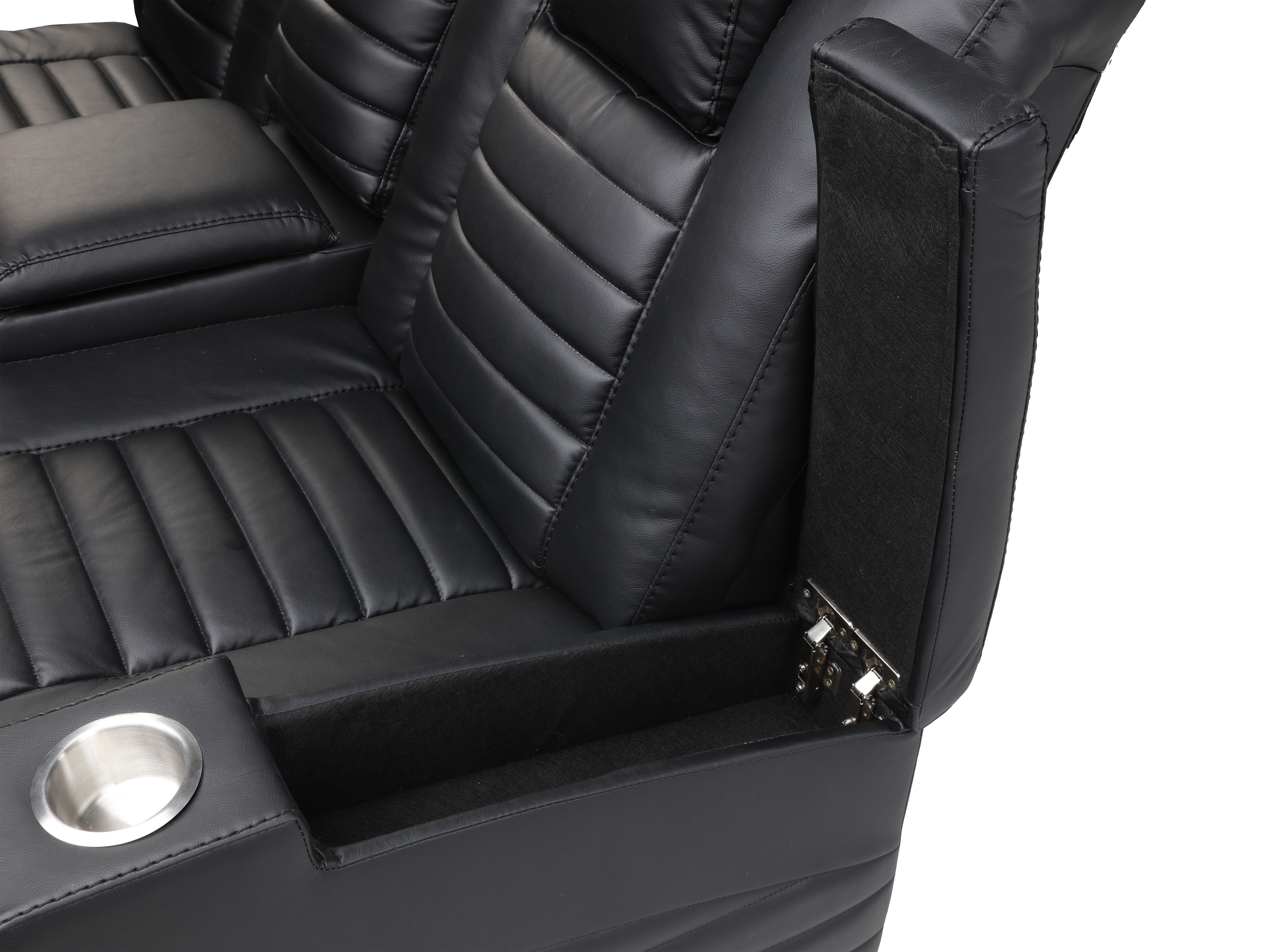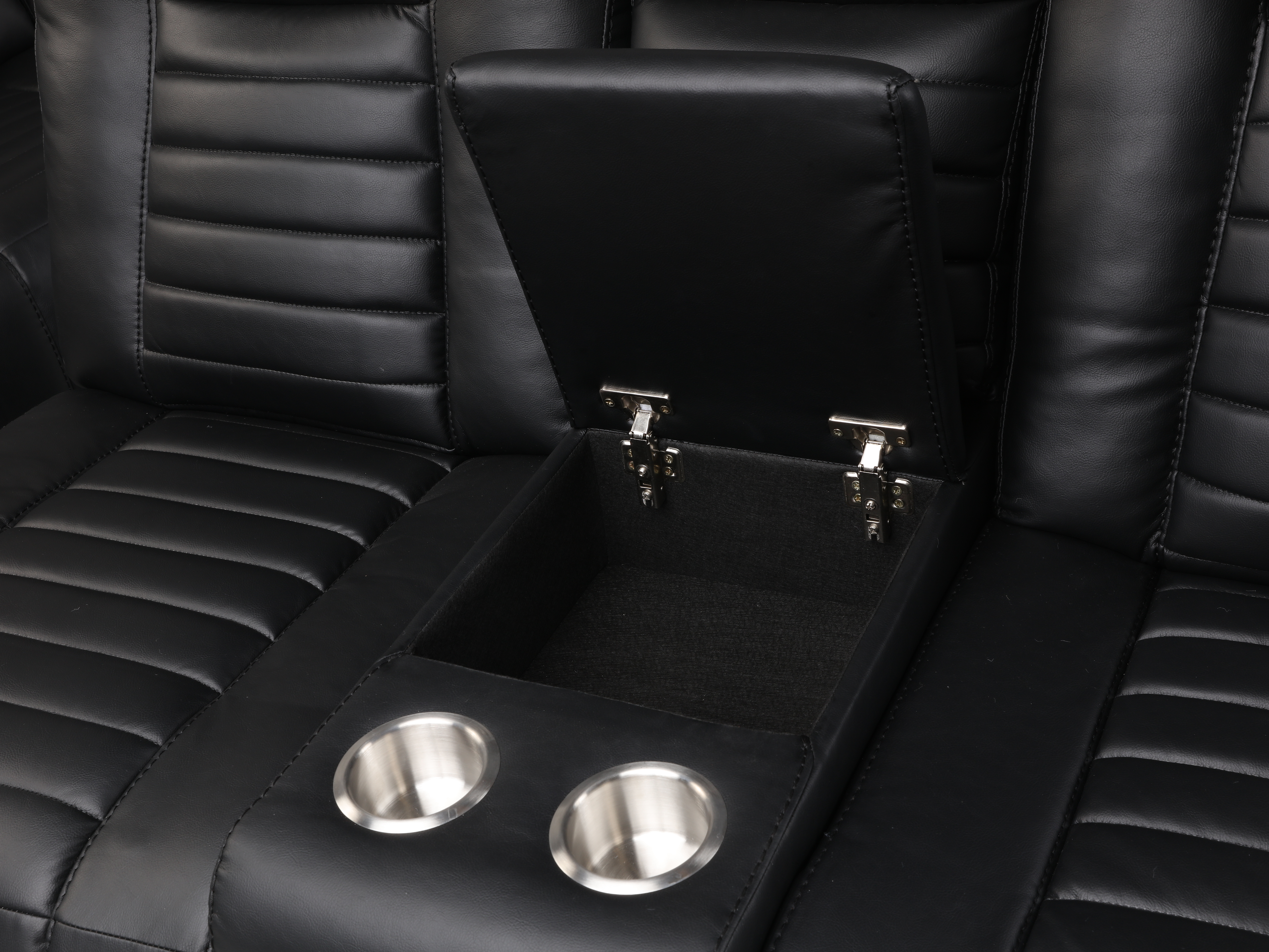 - RAF Loveseat with console featuring Bluetooth speaker, power headrest, light belt, and armrest with storage.