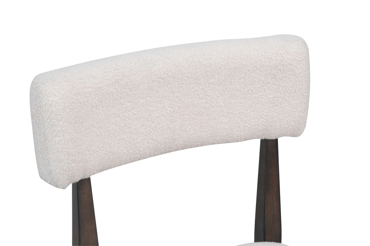 The set includes 4 matching chairs made with rubberwood frames and generously padded cream-colored fabric cushions on both the seat and backrest. The clean, open-back design and plush upholstery offer a perfect balance of comfort and elegance—ideal for everything from casual breakfasts to stylish dinner parties.