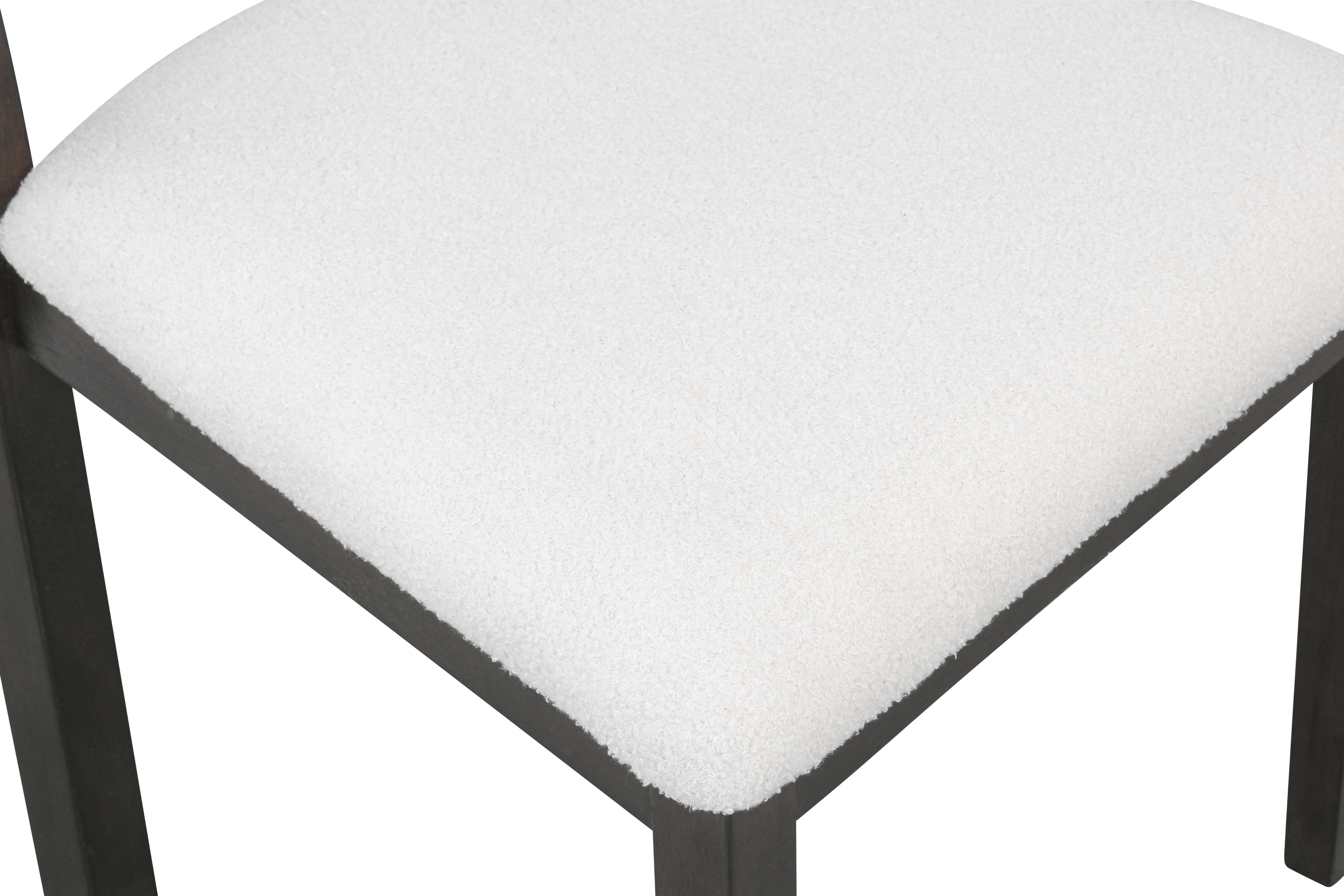 - Chairs: Rubberwood frames with cream fabric upholstery