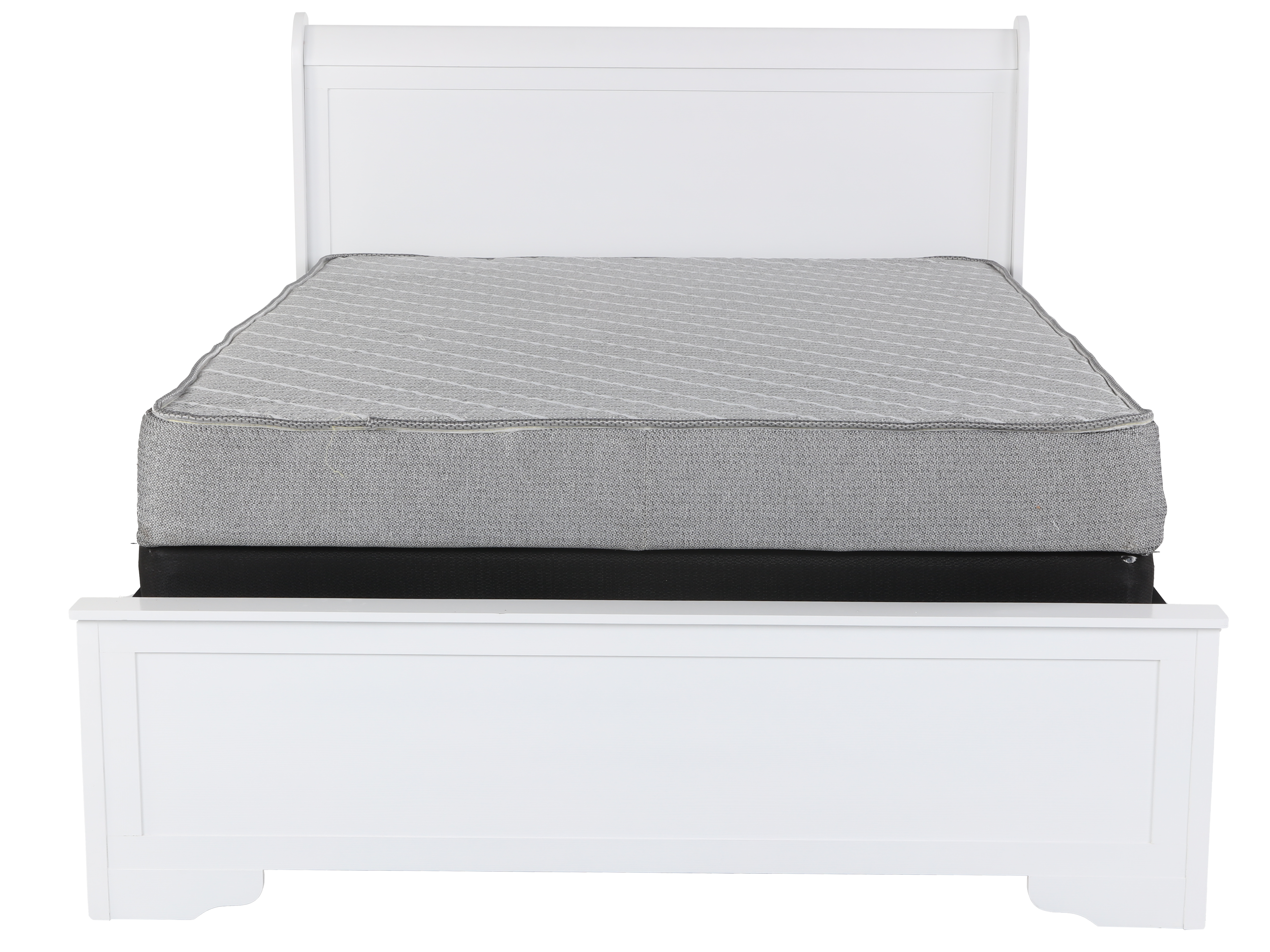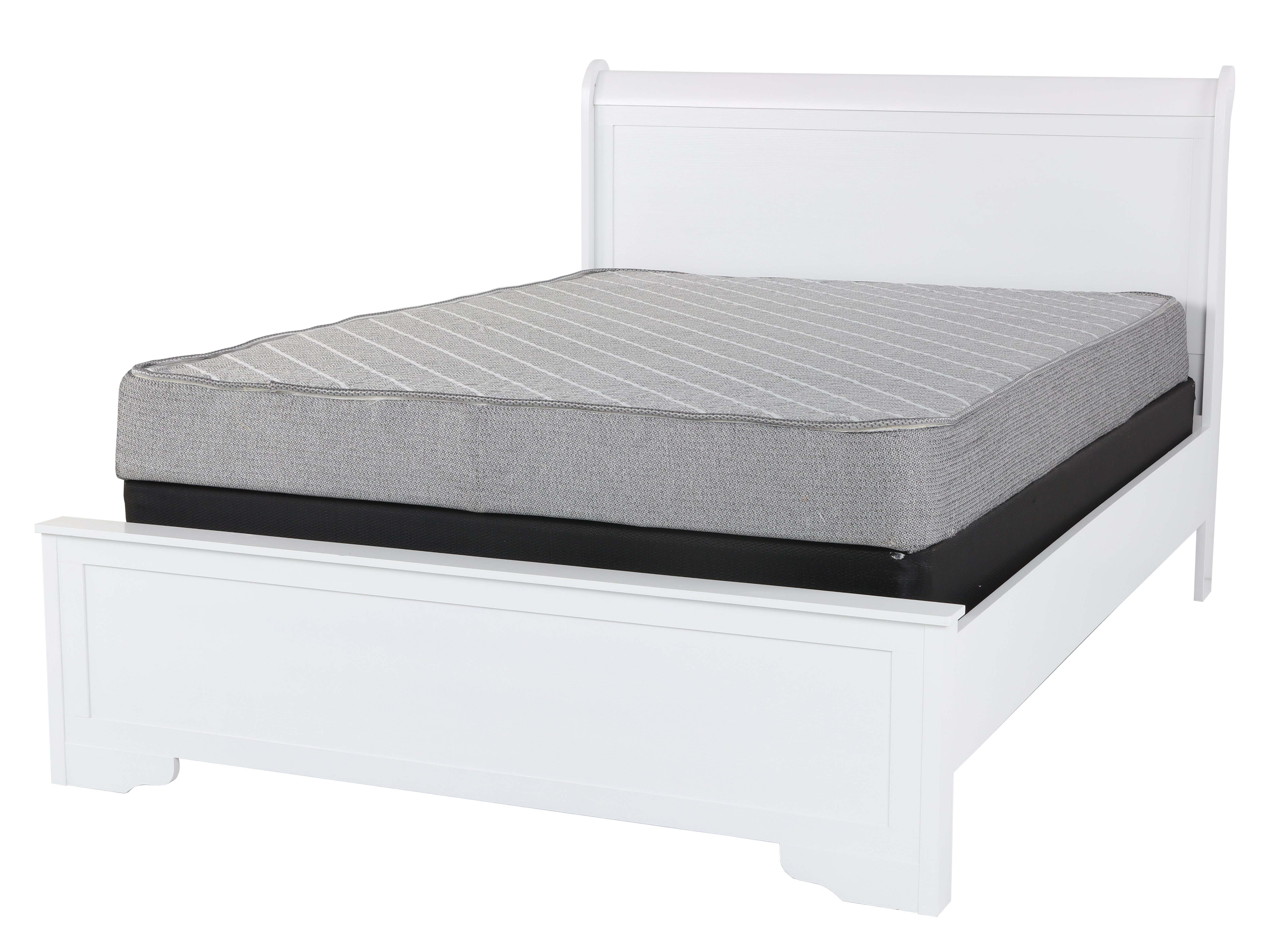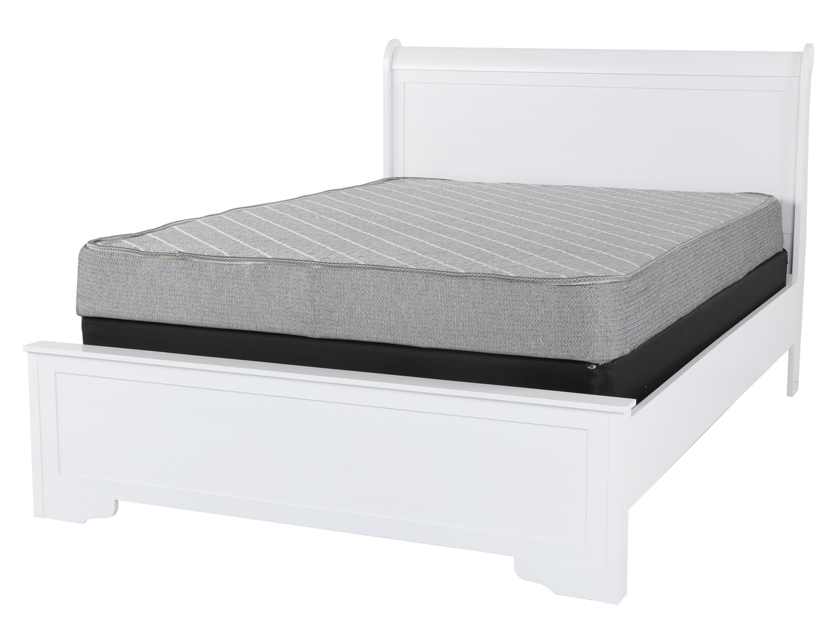 Transform your bedroom into a tranquil oasis with our Bedroom Set. This elegant collection features a sleek white bed frame with a high headboard, providing a minimalist yet sophisticated focal point for your room. The bed features a classic sleigh bed design with a channel-tufted headboard for added comfort and style. The nightstand offers two drawers for storage, while the dresser boasts ample space with six drawers and a mirrored top. The set includes a Full or Twin bed, a matching nightstand with two drawers, and a wide dresser with a large mirror, all crafted with clean lines and a smooth finish. Each piece is complemented by simple, round drawer knobs, adding a touch of modern elegance.